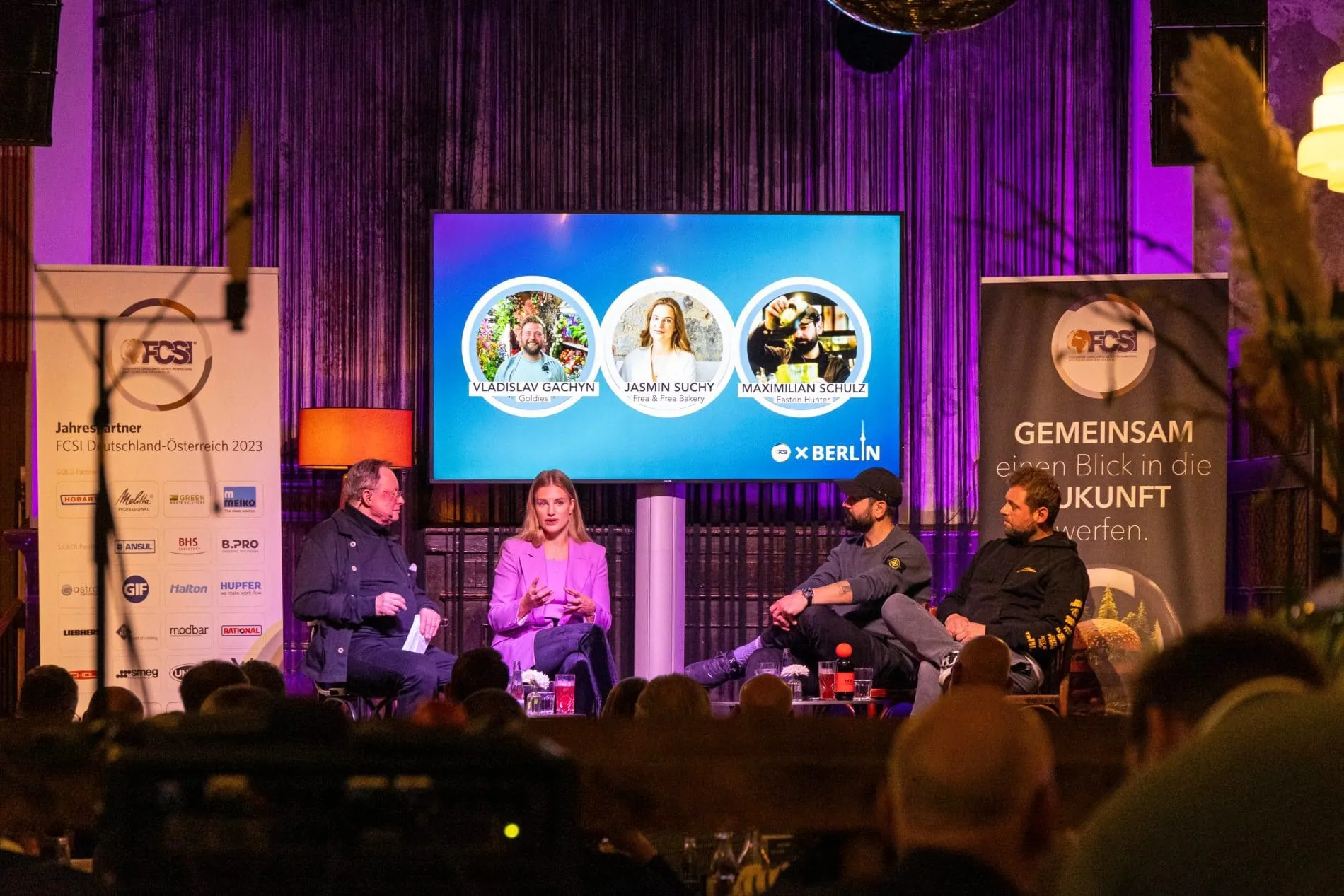 Gastro-Panel bei der FCSI-Convention: (von links) Stephan Falke (FCSI), Jasmin Suchy (Frea & Frea Bakery), Maximilian Schulz Easton Hunter) und Vladislav Gachyn (Goldies).