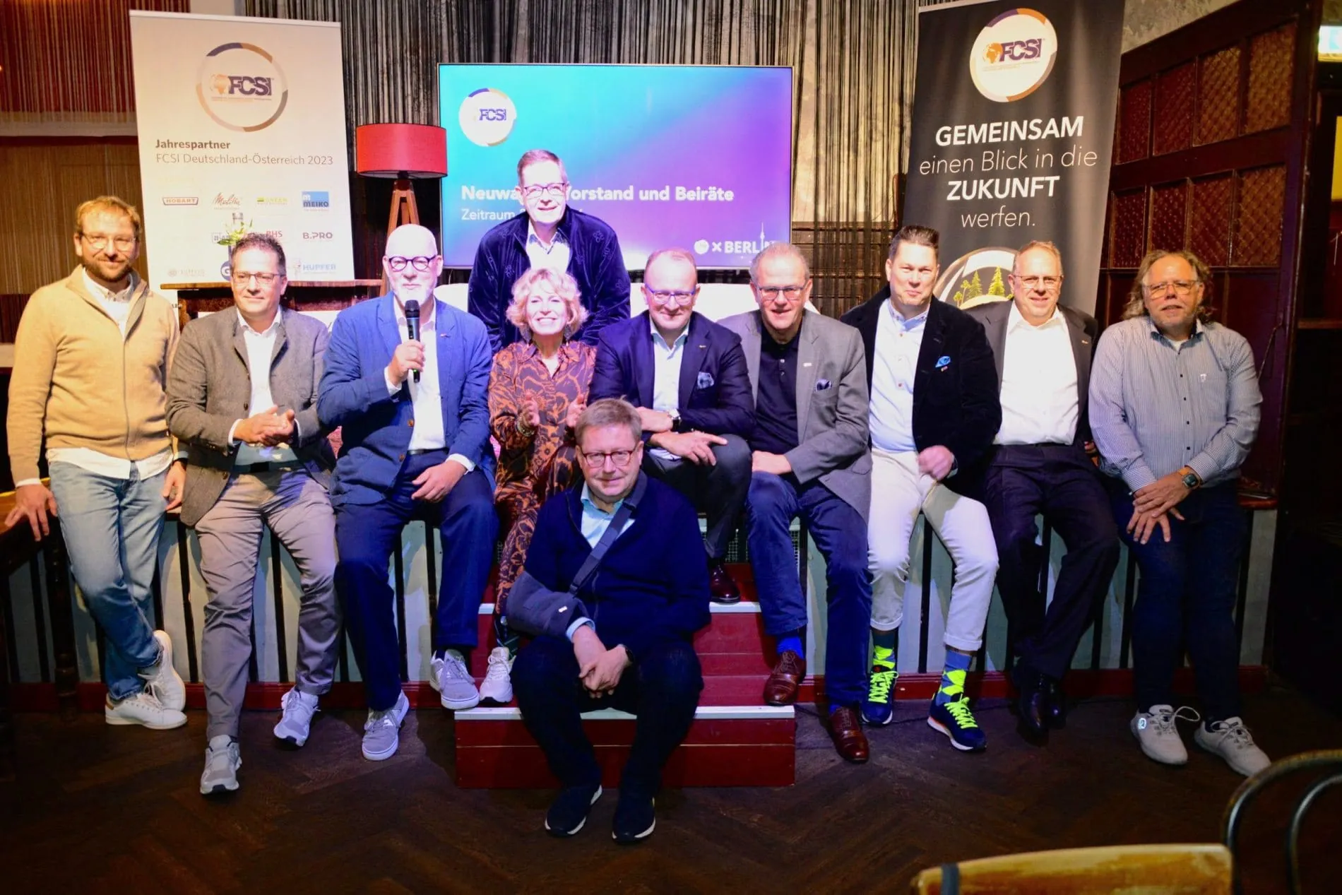 FCSI-Vorstand nach der Wahl: (von links) Patrick Hoffmann (Vertreter Fördermitglieder), Dietmar Krämer (Vertreter Fördermitglieder), Götz Braake (Bildung & Wissen), Bettina von Massenbach (Presse & Öffentlichkeitsarbeit), Thomas Mertens (Digitalisierung), Alexander Hofer (Marketing), Michael Neuner (Vize Präsident), Ruven Eichert (Schatzmeister), Jörg Holdenried (Netzwerke & Verbände), Christian Meißner (Prof. Mitglieder), Frank Wagner (Präsident). Nicht im Bild: Pierre Nierhaus (New Business).