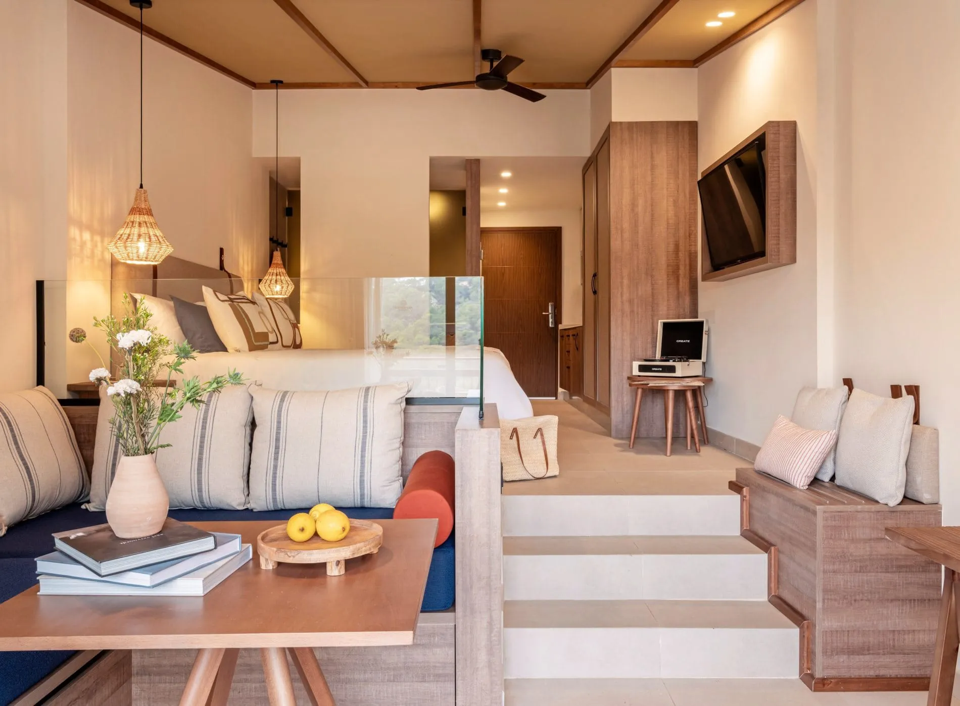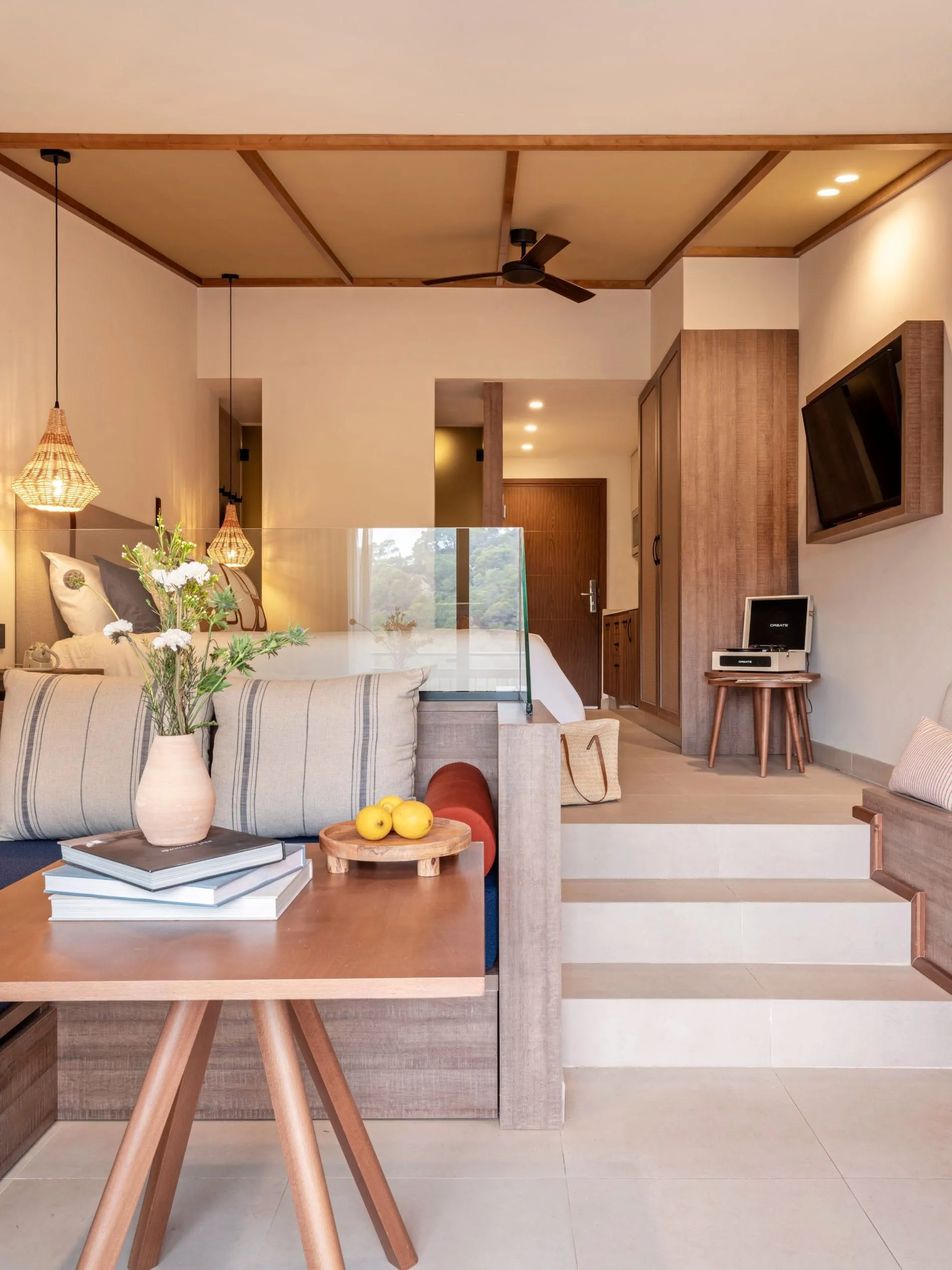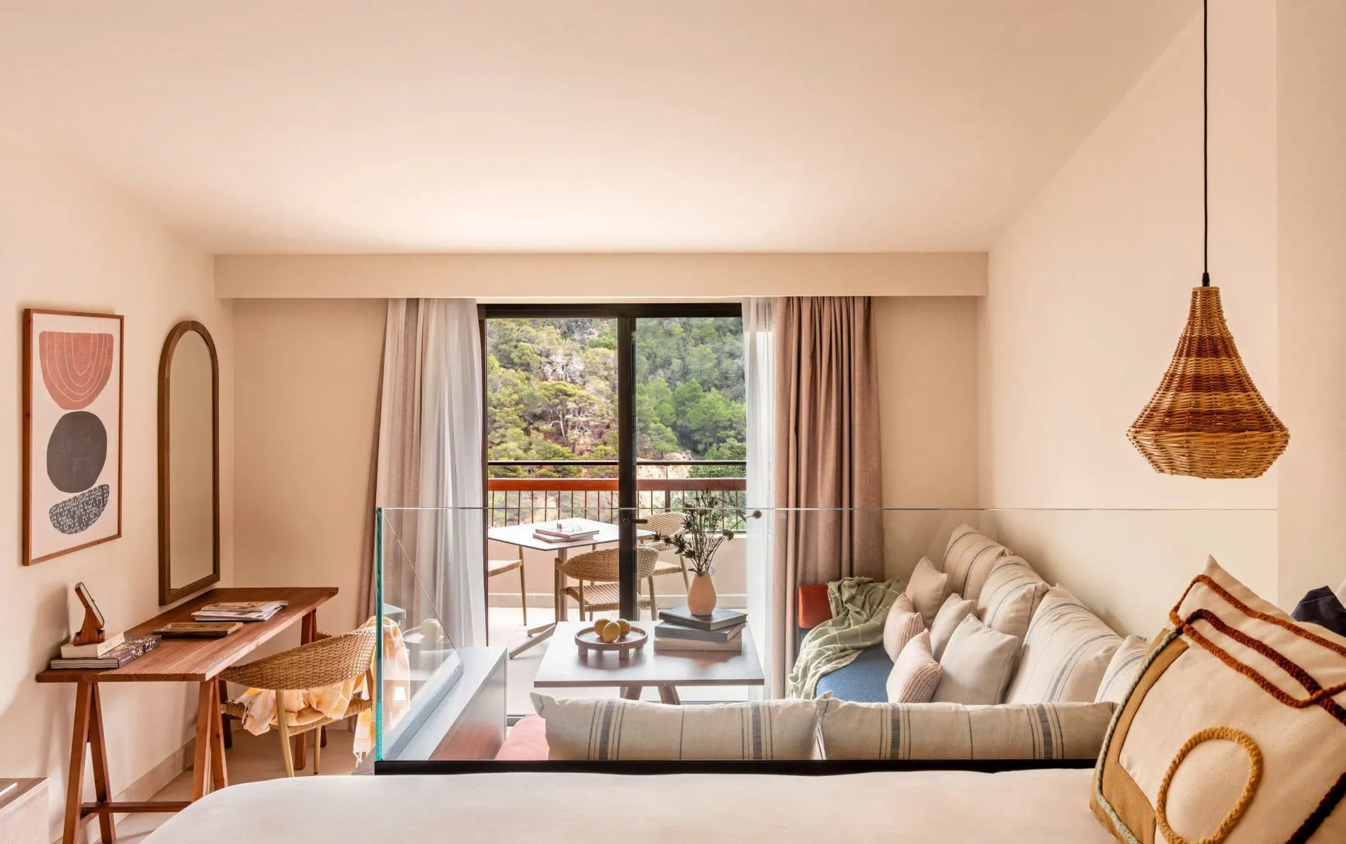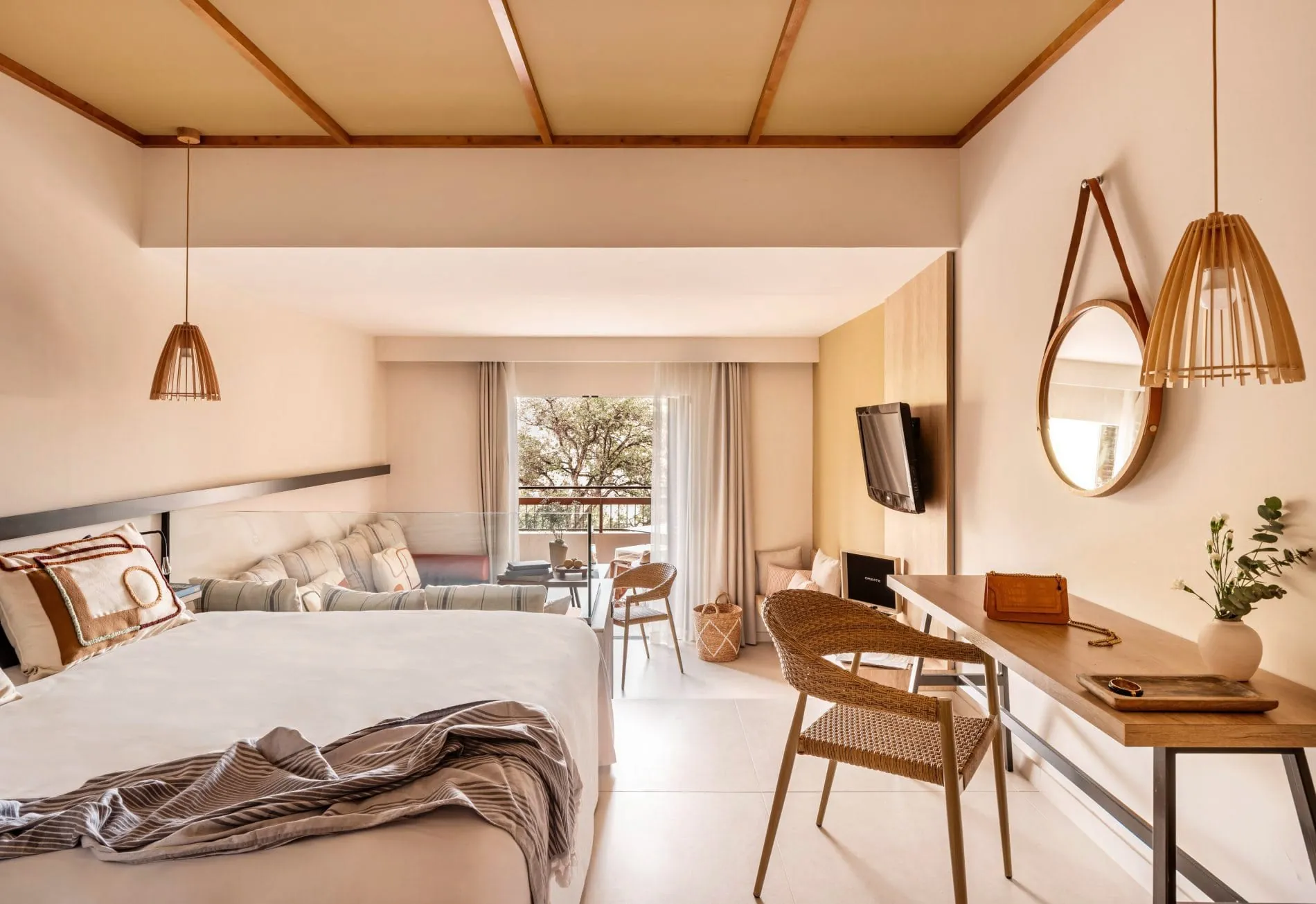 Das Hotel ist in die Natur eingebettet und umfasst 214 Zimmer und Suiten. Die Suiten, Junior-Suiten, Casa ZEL und Duplex bieten allesamt einen Blick auf das Meer, die Berge, den Garten oder, wie in den meisten Fällen, mit einer Kombination aus all dem.