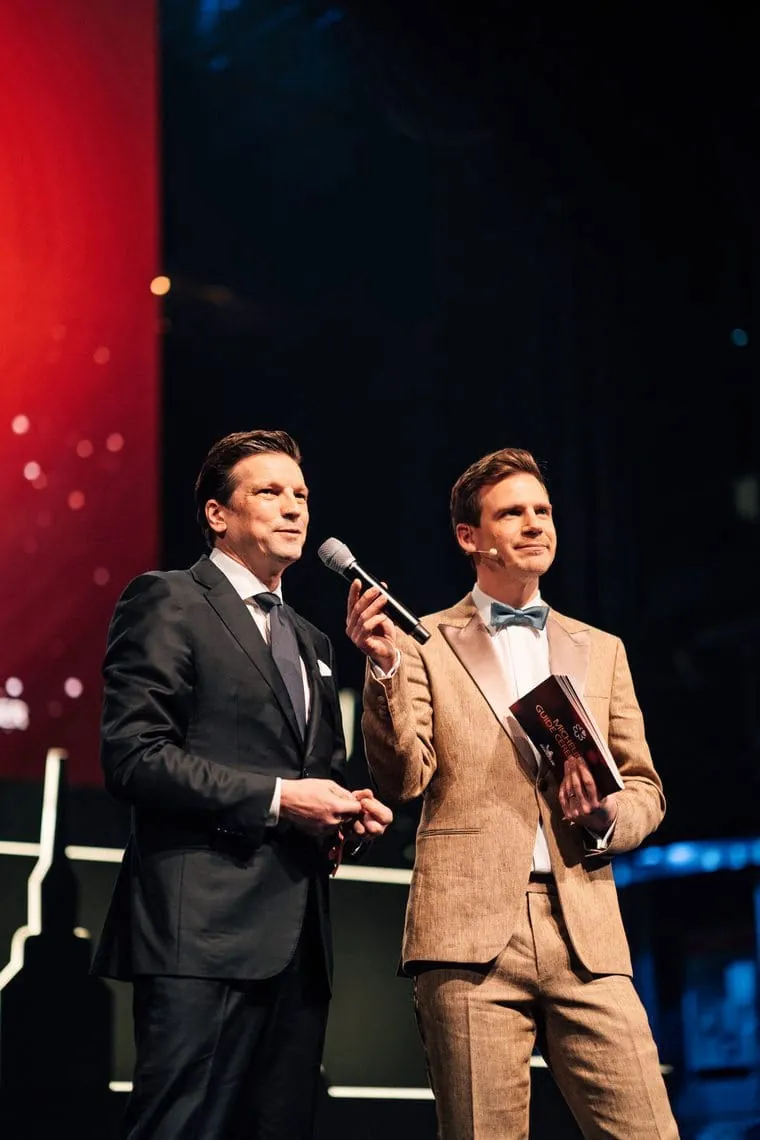 Verliehen wurden auch vier Awards für besondere Leistung der Restaurantteams: Als "Mentor Chef" geehrt wird Christian Bau aus dem Drei-Sterne-Restaurant "Victor's Fine Dining by Christian Bau" im saarländischen Perl-Nennig, weil er dem Nachwuchs wertvolles Know-how vermittle. Den "Young Chef Award" samt Stern erhielt Alina Meissner-Bebrout mit ihrem Restaurant "Bi:braud" in Ulm. Der "Service Award" ging an Mona Schrader aus dem Zwei-Sterne-Restaurant "Jante" in Hannover. Für seine Weinexpertise geehrt wurde Christophe Meyer vom "Le Pavillon" im Schwarzwaldort Bad Peterstal-Griesbach.