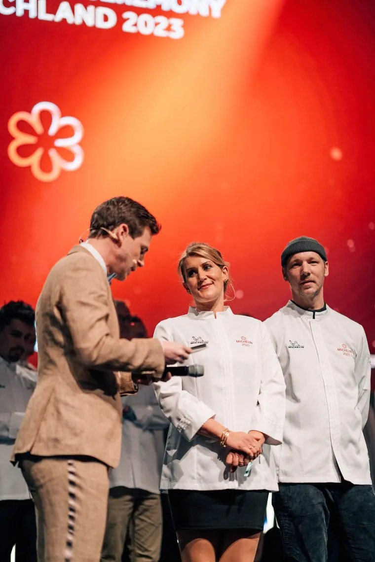 Jan Hartwig sprang mit seinem Restaurant "Jan" im Münchner Museumsquartier aus dem Stand in den Sterne-Olymp. Bereits aus dem Münchner "Atelier" für seine Drei-Sterne-Küche bekannt, überzeugte er nun im eigenen Restaurant. Hartwig wurde für seine Küche und seine Handwerkskunst direkt mit drei Sternen ausgezeichnet. "Ich bin sprachlos", sagte Hartwig. Als Koch gebe man sich jeden Tag so viel Mühe, aber den dritten Stern zu bekommen, sei unfassbar. Er dankte seinem Team, seiner Lebensgefährtin und Familie.