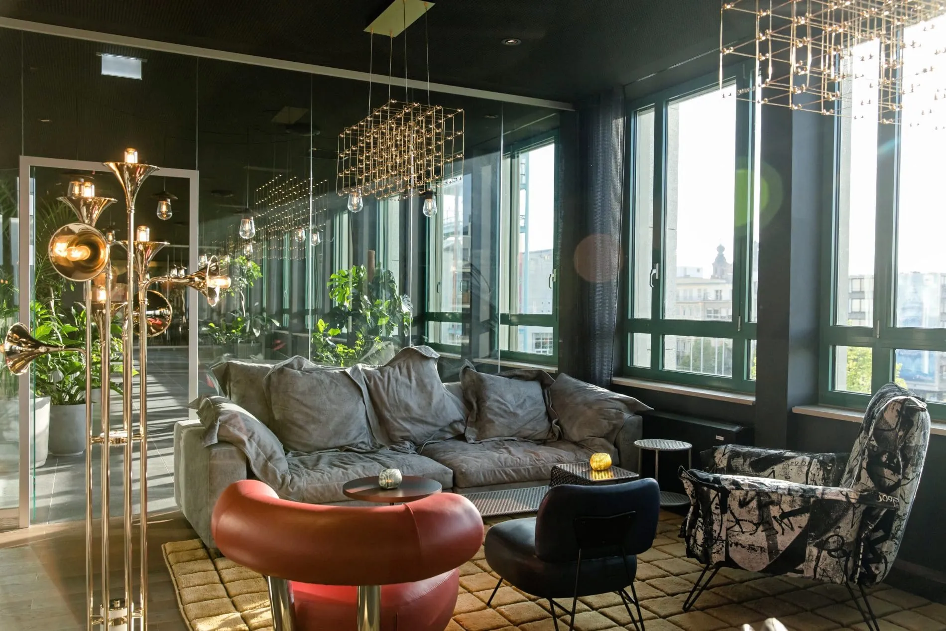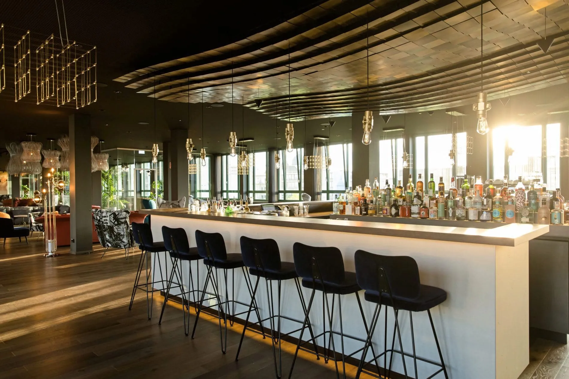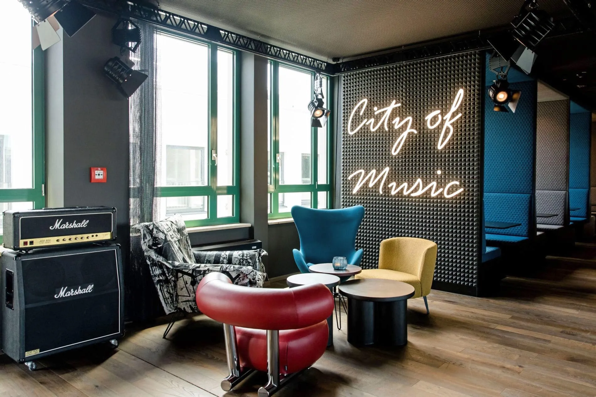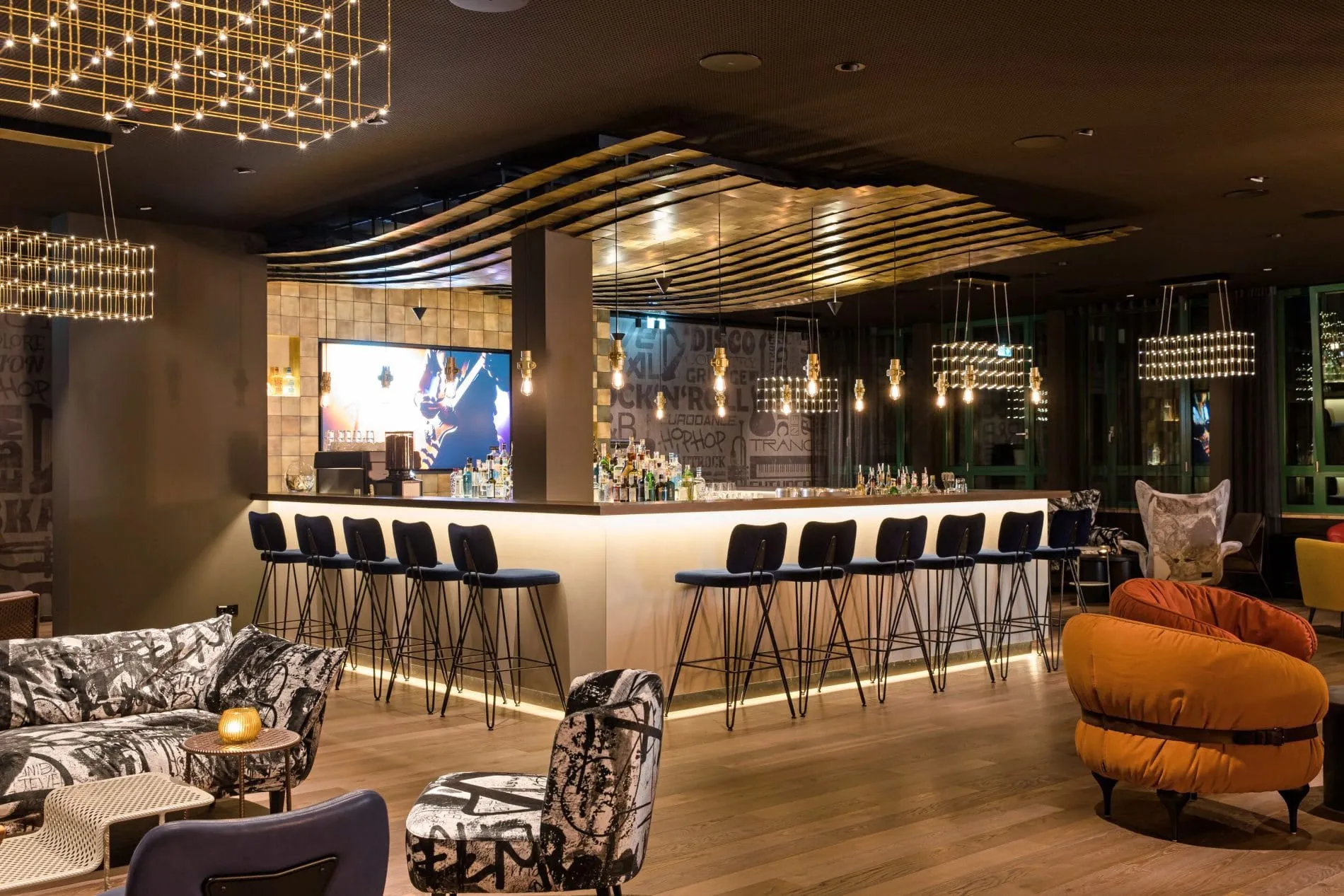 Während das Erdgeschoss der Klassik gewidmet ist, steht der Bar- und Loungebereich im vierten Obergeschoss im Zeichen moderner Musikstile wie Hip-Hop, Rock und Jazz. Die Bar ist angelehnt an das Design einer Bühne, hinter der ein großer Monitor Ausschnitte von Konzerten zeigt. Auf der anderen Seite des Raums können Gäste auf einer „echten Bühne“ mit Bühnenbeleuchtung Platz nehmen, die auch für Live-Auftritte bereitsteht. Ein leuchtender Schriftzug erinnert mit "City of Music" an die Auszeichnung der UNESCO.