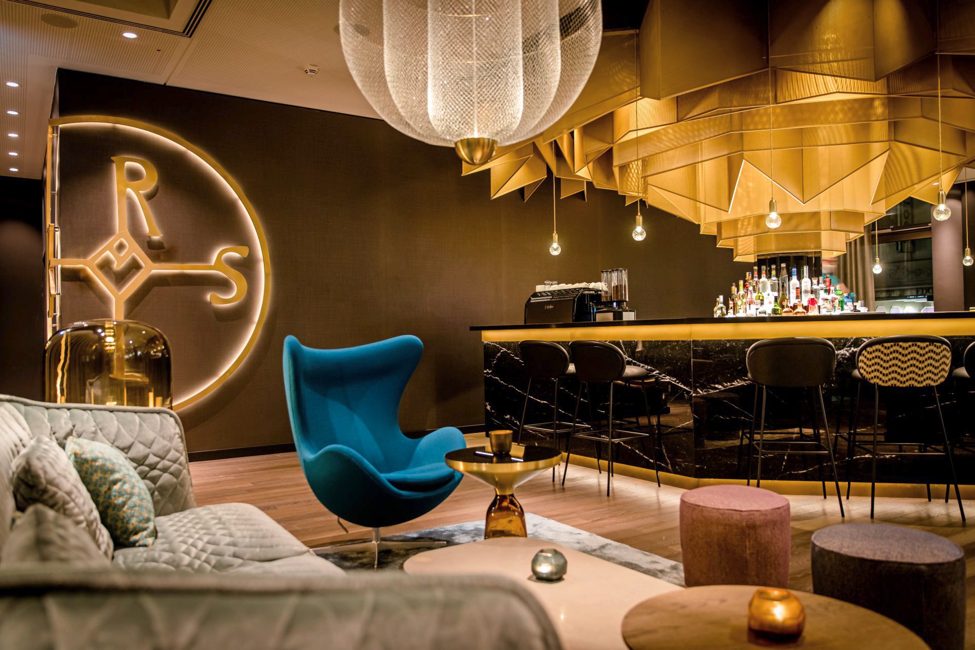 Ein besonderes Highlight soll Hotelgäste an der Bar erwarten: Diese ist als angedeutetes Achteck angelegt und ist eine moderne Interpretation der Pfalzkapelle des Doms. Der Barbereich wird ergänzt von einer Installation aus vergoldeten Blechen.