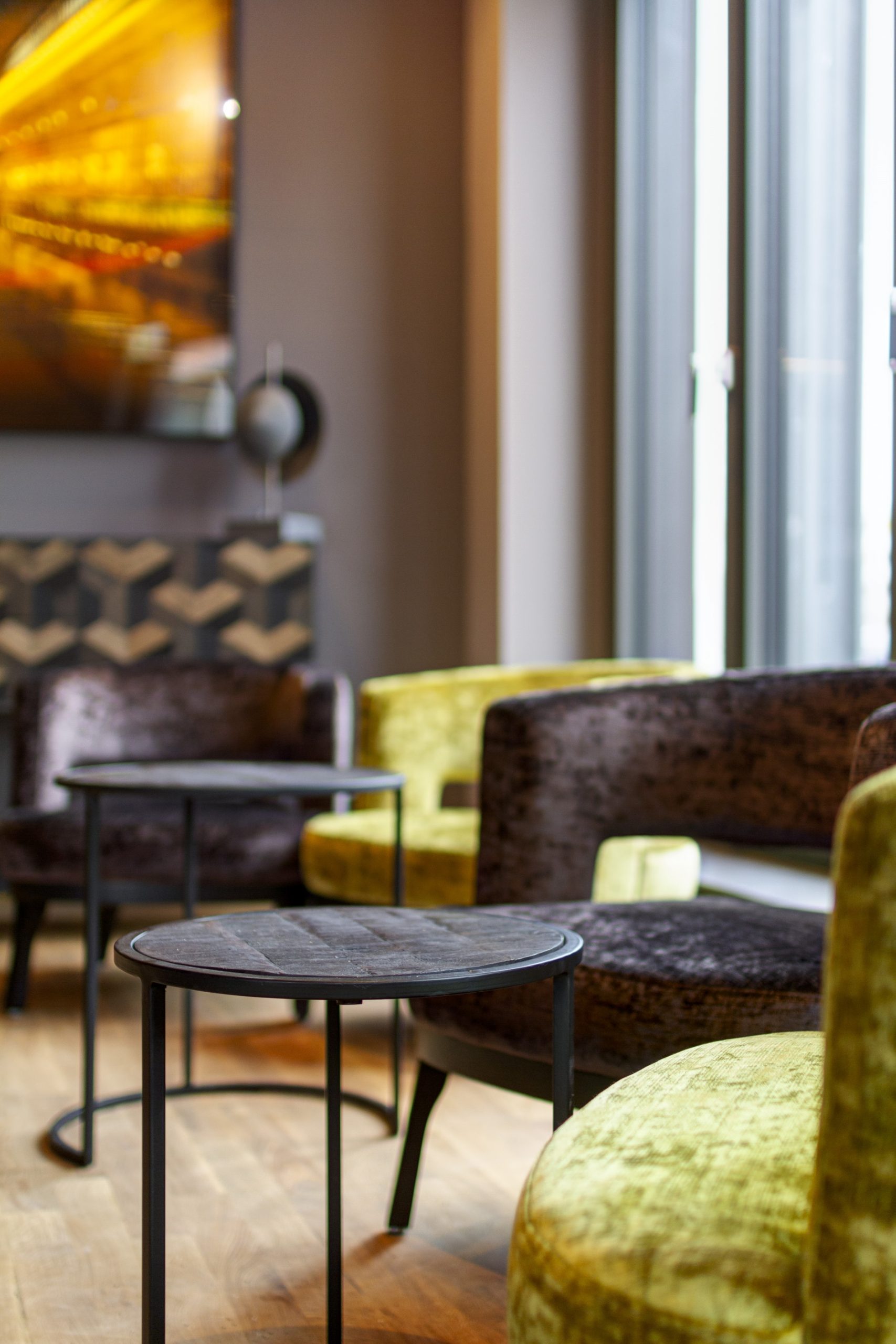 Das Gefühl von Großstadt und urbanem Schick vermittelt das 4-Sterne-Haus in den Zimmern ebenso wie im großen Bar- und Restaurantbereich: Dunkle Wände, massive Türen, Eichenholzparkett, großflächige Gemälde sowie Ledersessel, Nussbaum-Sekretäre und Philippe-Starck-Natursteinbäder – ein nachhaltiges Design, das auf langlebige und edle Materialien setzt. Zentraler Punkt ist im Erdgeschoss die große Bar mit Restaurantbereich, aus dem die Gäste durch die zu öffnende Glasfront in den grünen Innenhof des Quartiers blicken.