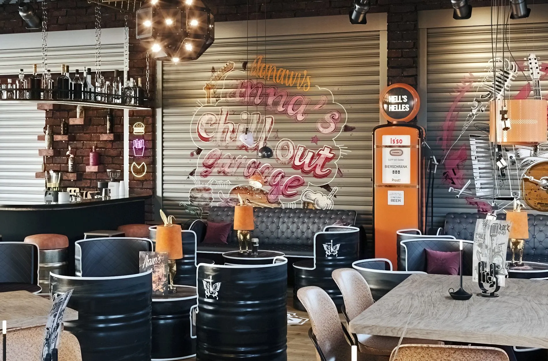Darüber hinaus entstehen Lampen aus alten Grammophontrichtern und Hochtönern. Bereits genutzte Ziegel schmücken die Barwand, und kaputte Snaredrums (Schlagzeug) werden zu Hängeleuchten umfunktioniert. Alte Bassboxen dienten künftig als Spiegelrahmen in den Sanitärräumen. Weitere Highlights: Bar-Möbel aus Ölfässern und Sitzgelegenheiten aus Instrumenten-Cases. Noch bis einschließlich 24. Dezember befindet sich das Hotel in den Betriebsferien. red/nz