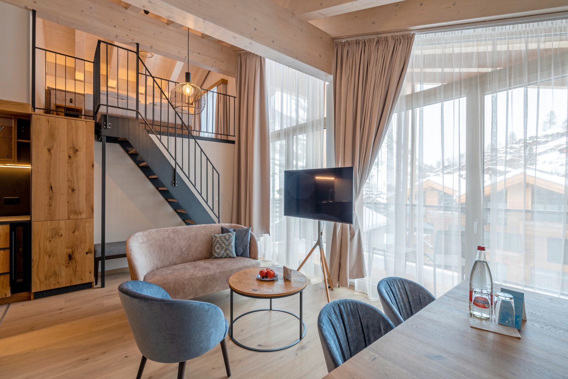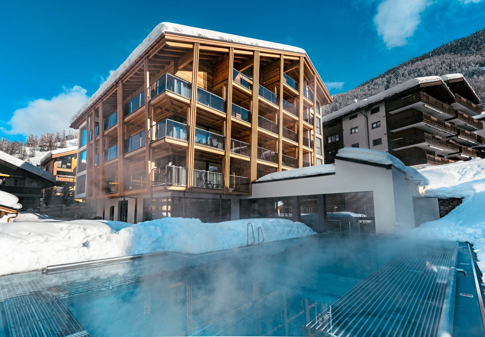 In den großzügigen Einheiten, davon sieben Doppelzimmer, sieben Junior Suiten und neun Apartments, teilweise ausgestattet mit Küche und Essplatz, versprühen rustikales Eichenholz und Steinoptik sowie Stoffe in den Farbtönen braun, anthrazit und hellblau einen heimeligen Charme. Kulinarisch soll das Resort mit moderner, alpiner Küche und Schweizer Spezialitäten wie Raclette und Fondue aus hochwertigen, regionalen Produkten überzeugen. So umfasst das gastronomische Angebot das "La Ginabelle Restaurant" und seit Ende 2020 die "Käsestube Melted" sowie das neue Gourmetrestaurant "Peak 3".