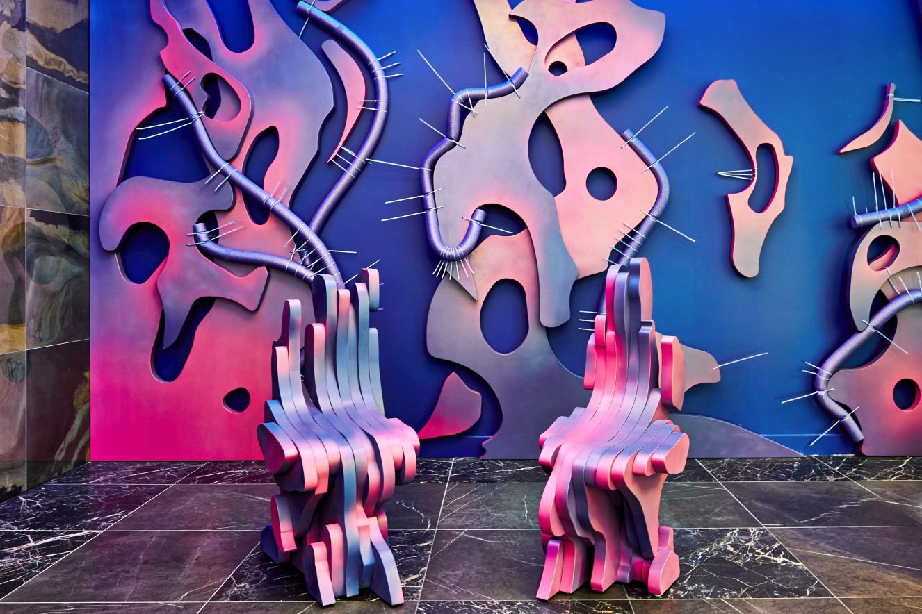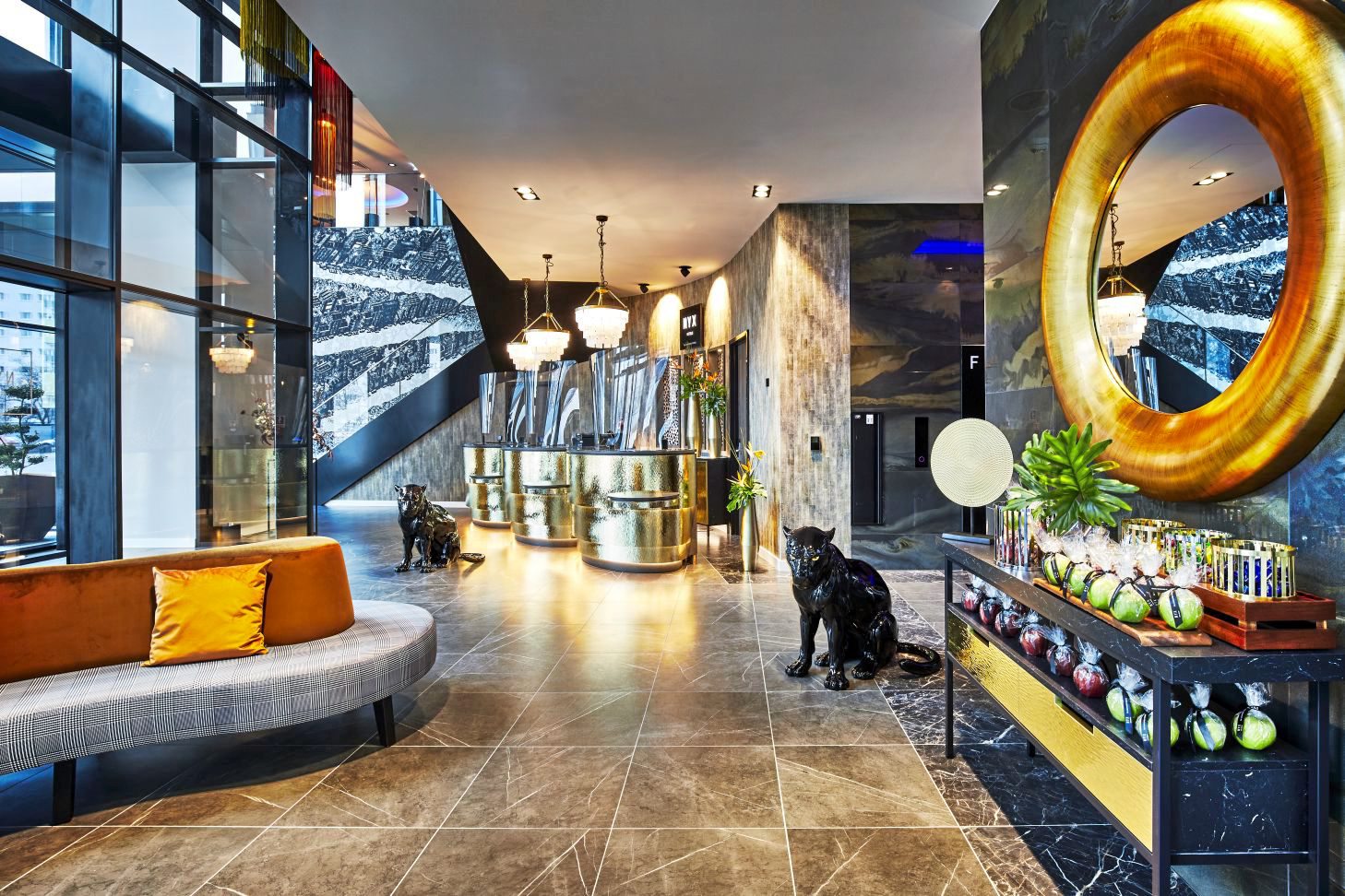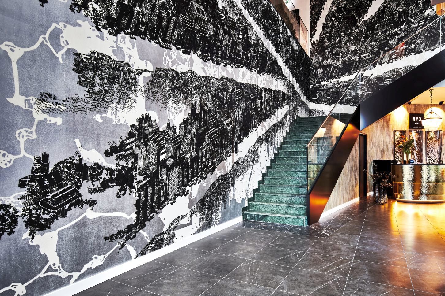 Gleich am Eingang steht ein Monolith von Mariusz Tarkawian, der vollständig mit Grafiken bedeckt ist, inspiriert von Sci-Fi-Filmen und Comics. Im Lobby-Bereich sind die Wände des Treppenaufgangs mit Graffiti-Kunst von Mariusz Waras bedeckt, die ein modernes Stadtgebiet darstellt. Im echten Graffiti-Schablonen-Stil ist es das größte Werk im Hotel. Der Street-Art-Künstler, Grafiker und Designer ist vor allem für sein Projekt "m-city" bekannt, das heißt für seine Murals, die an den Wänden von städtischen Gebäuden entstehen.