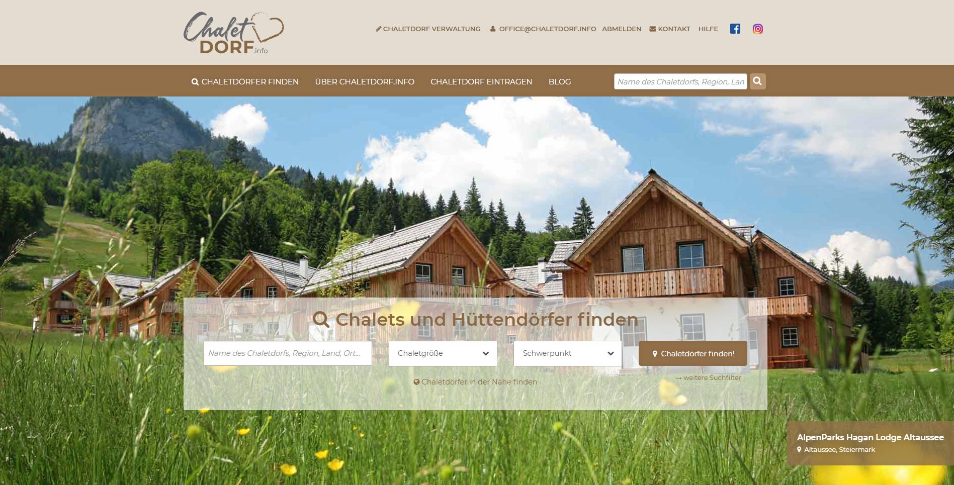 Neues Urlaubsportal Chalet-, Lodge- und Hüttendörfer im Alpenraum