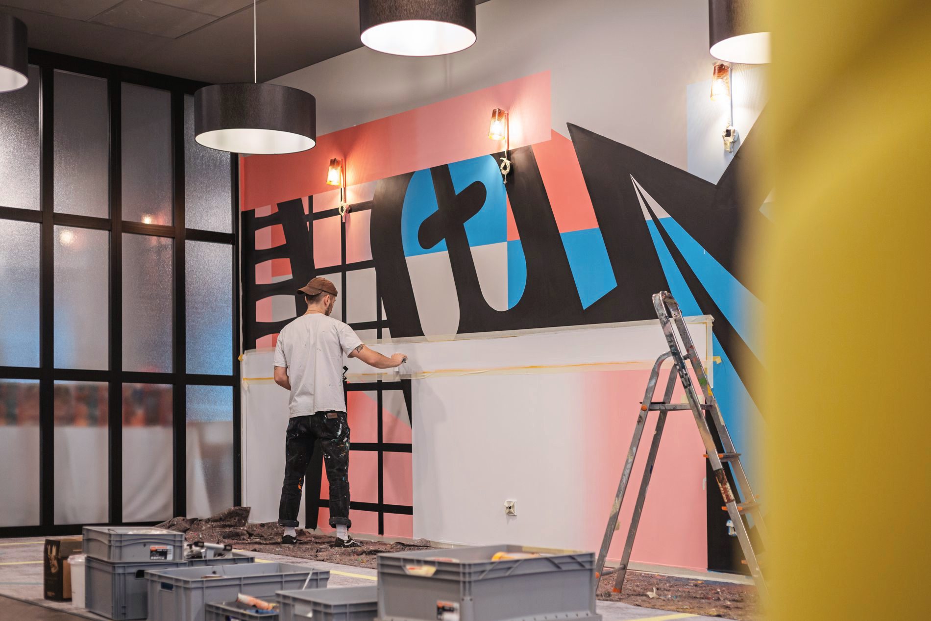 Künstler Alexander Isakov während der Gestaltung des The Niu Tab in Düsseldorf. © Novum Hospitality