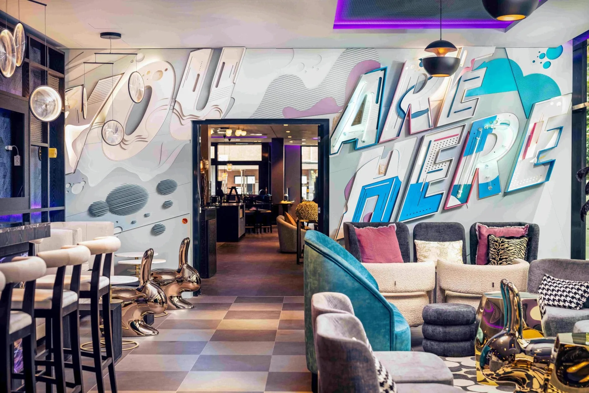 Die künstlerische Gestaltung im Hotel übernahm Kurator Mirko Reisser (DAIM). Gemeinsam mit den Künstlern Niels Buschke, Moritz Green und Bobbie Serano verwandelte er das Erdgeschoss des Lifestyle-Hotels in eine Galerie.Beim Betreten des Hotels sehen die Gäste direkt das erste Werk von Reisser, der sich dort mit einer grafischen Struktur, in der sein Künstlername "DAIM" eingebettet ist, verewigt hat. In der Lobby stehen zwei Art-Chairs von Künstler Niels Buschke aus lackiertem Holz, Skulpturen und Möbelstücke zugleich, die aus den Buchstaben N, Y, und X zusammengesetzt sind und als Selfie-Spot dienen sollen.