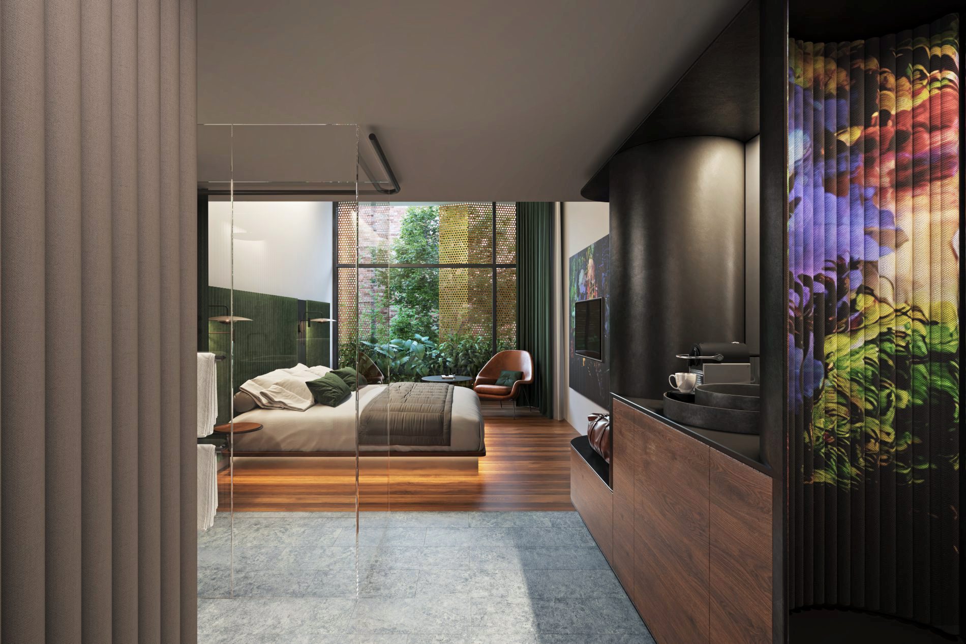 Für das Interior zeichnen gleich zwei Einrichtungsfirmen verantwortlich: A Work of Substance aus Hong Kong wird die Zimmer, öffentlichen Bereiche und Event-Areas designen. Das Unternehmen A Work of Substance soll durch das Interior bei den Gästen einen bleibenden Eindruck hinterlassen - unter anderem mit dem zentral liegenden Innenhof, der als Austragungsort diverser Live-Events dienen soll. An der Rooftop-Bar, dem Restaurant und Coffeeshop soll die Firma Acme & Co aus Sydney arbeiten.