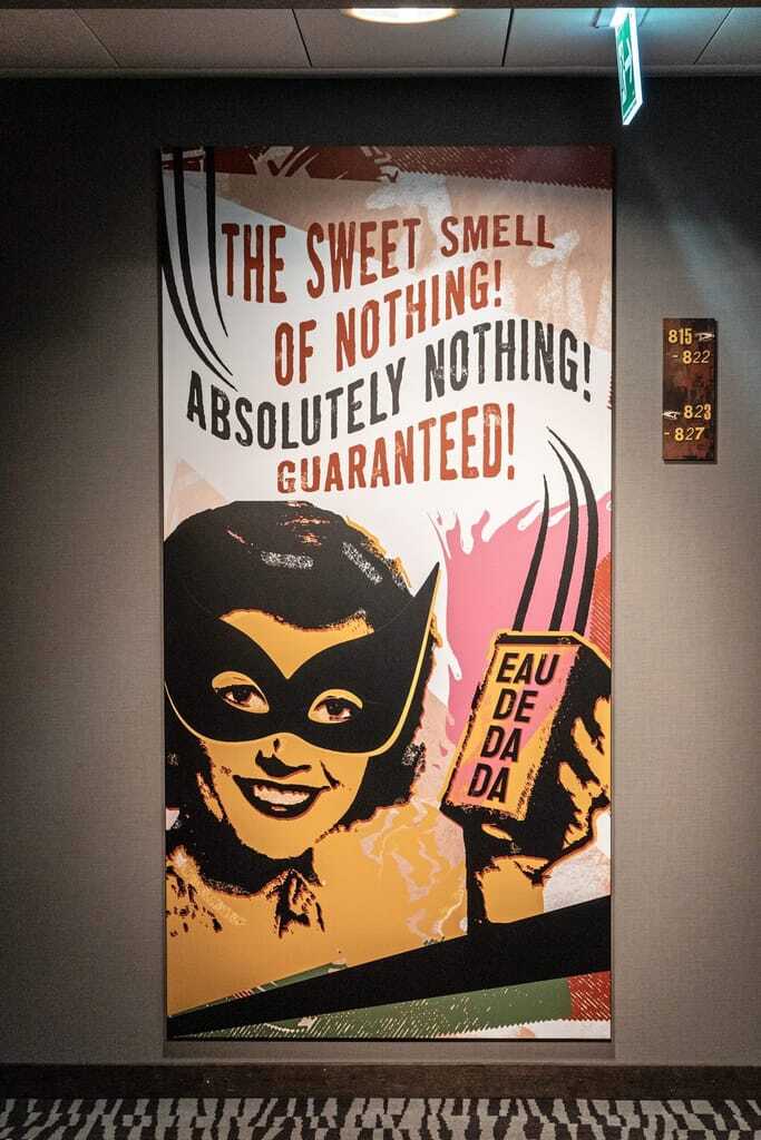 Neben den renovierten Zimmern begegnen Gäste auf den Fluren großformatigen Dada-Kunstwerken. Der Zürcher Künstler Martin Wanner steuerte 20 Grafiken bei, die mit Humor und Ironie moderne Interpretationen der dadaistischen Idee liefern. "Ich wollte eine eigene, zeitlose Dada-Interpretation schaffen – 'Dada reloaded'. Humor, Ironie und das Spiel mit dem Absurden stehen im Zentrum meiner Werke", beschreibt Wanner seinen künstlerischen Ansatz. red/sar