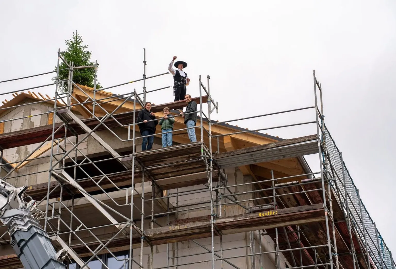 „Mit dem Richtfest haben wir einen wichtigen Meilenstein erreicht. Das Dach ist drauf – und damit ist der Rohbau unseres Herzensprojekts weitgehend abgeschlossen“, freute sich Bauherr Marc Vollbracht. Gemeinsam mit seiner Frau Sandra Vollbracht lud er alle Gäste ein, auf das bisher Geschaffene anzustoßen, den traditionellen Richtspruch zu hören und den Baufortschritt vor Ort zu erleben.