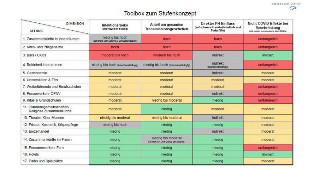 RKI-Toolbox zu Infektionsrisiko und Stufenkonzept