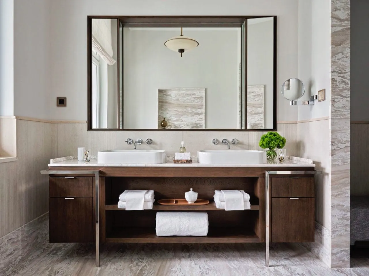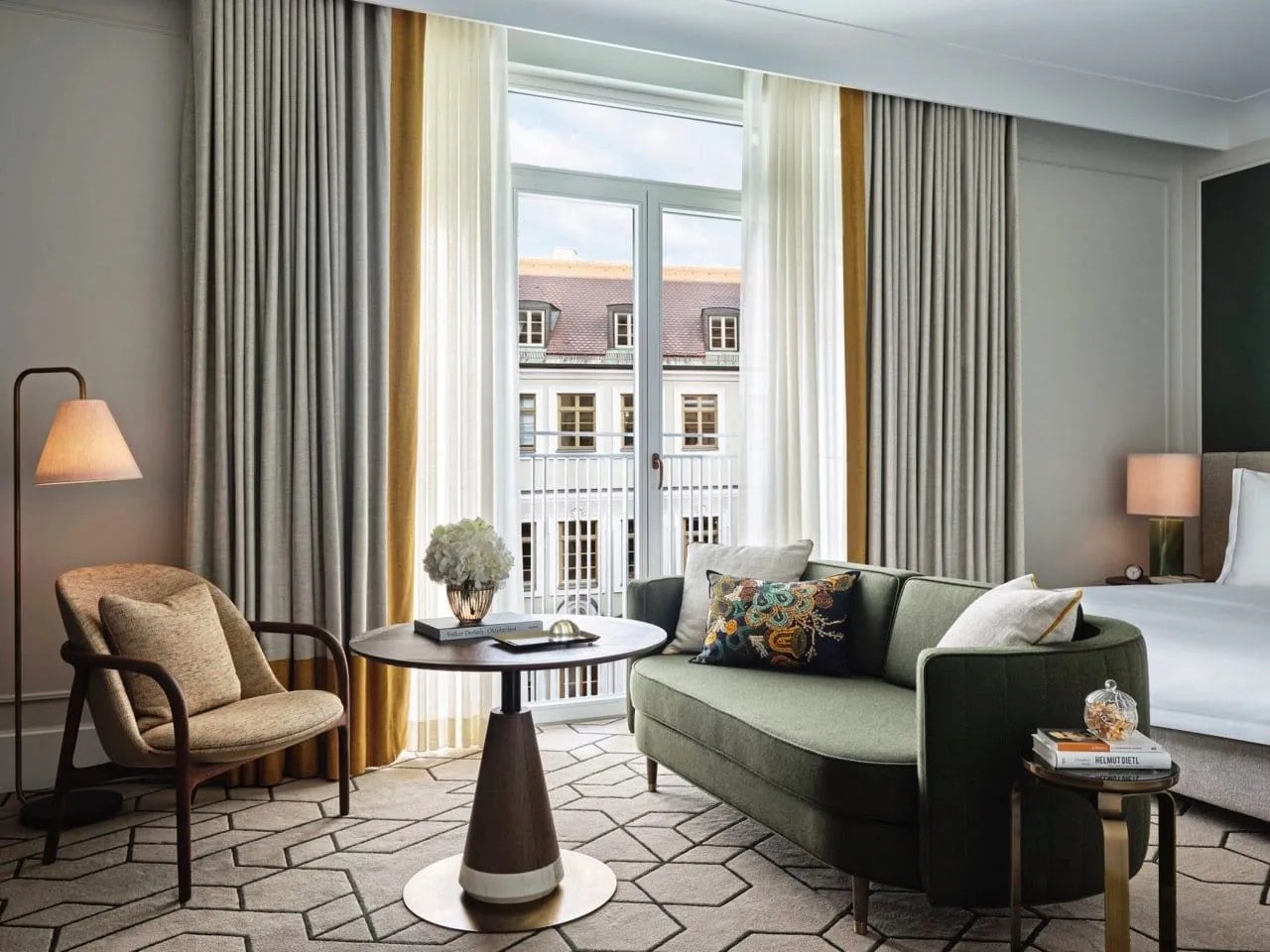 Beim Interior kombiniert Tara Bernerd & Partners Materialien wie Samt, Tweet und Leder. Sie kontrastieren den grauen Marmor und Holzelemente des Palais. "Das Rosewood Munich ist unser erstes Projekt mit Rosewood Hotels & Resorts und stellt einen wichtigen Meilenstein für uns dar. Unser Ziel war es, einen anspruchsvollen Einrichtungsstil mit einer zeitgenössischen Interpretation der barocken Architektur zu verbinden“, sagt Tara Bernerd, Gründerin von Tara Bernerd & Partners.