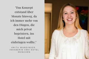 Anita Wandinger (29) hat im März 2019 im Münchner Hauptbahnhofs-Viertel das AWA-Hotel eröffnet. Dort legt sie Wert auf Offenheit für verschiedene Kulturen, stellt das Thema Frauen, aber auch die Kunst in de [...]