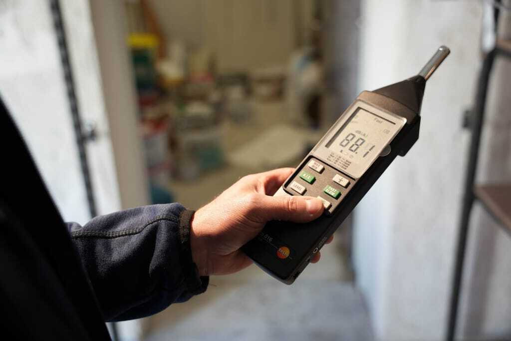 Schallpegelmessung: Der Warnton soll so laut eingestellt sein, dass er im Brandfall unüberhörbar ist. - © TÜV Süd