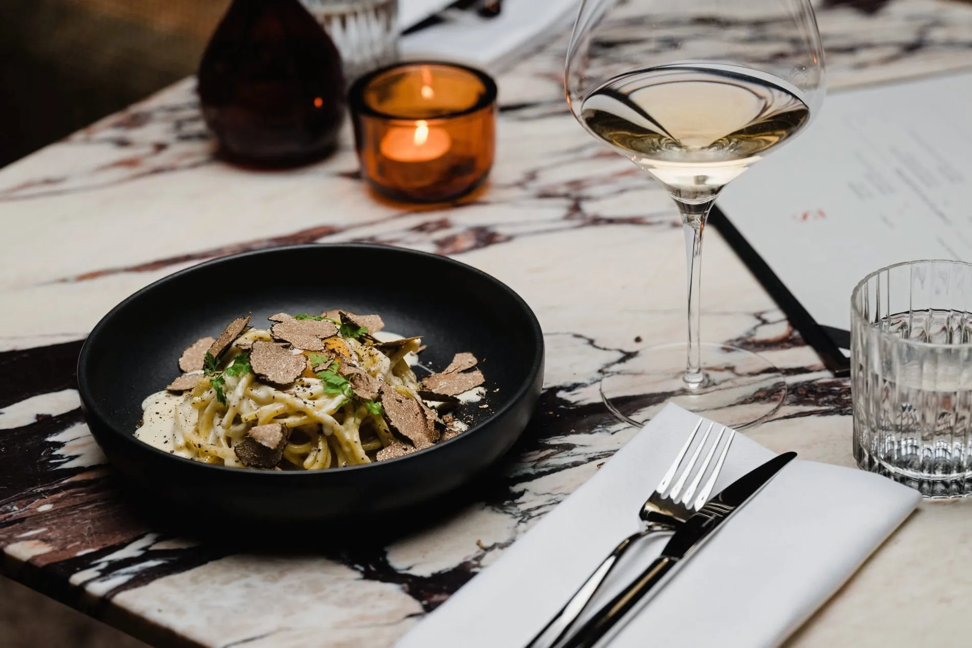 Im Mittelpunkt des Restaurants steht die offene Marrone-Küche. Dort gehen Küchenchef Matthias Meier und sein internationales Team seinem Handwerk nach und bereiten sowohl das Frühstück als auch moderne, euroasiatische Gerichte wie Trüffelpasta, Duck Salad oder Miso Cod zu. Für den Service zeichnet Restaurantleiterin Sunny Bruchwalsky verantwortlich, die vorher unter anderem im Berliner Restaurant "The No Name" tätig war.