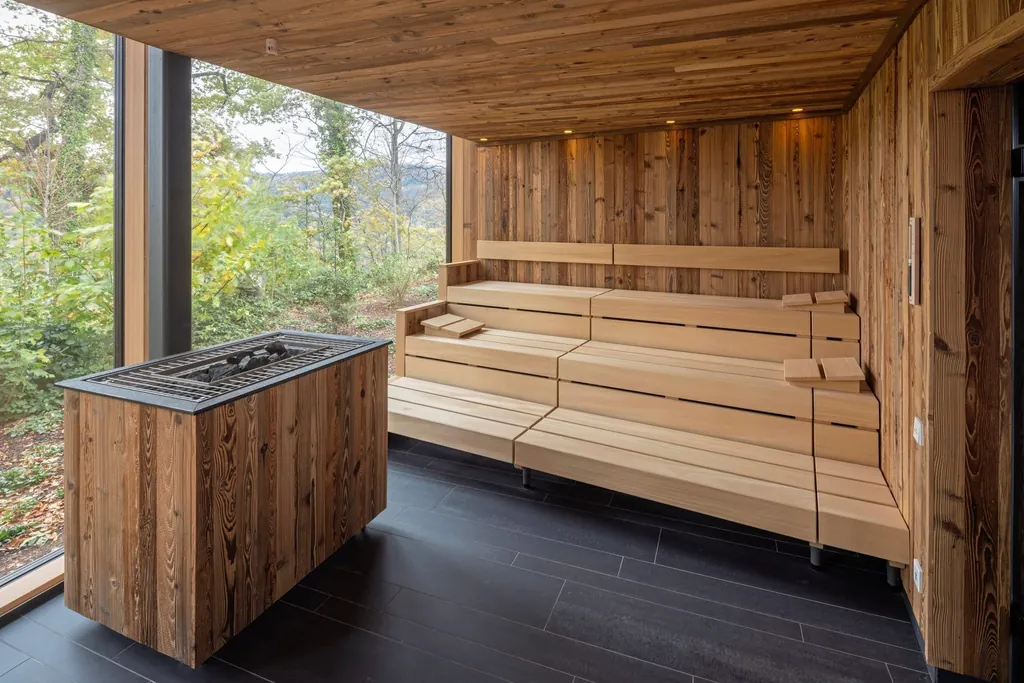 Im Mittelpunkt stehen die Förderung von gesundem Schlaf, Regeneration, eine ausgewogene Ernährung und aktive Bewegung. Neben einer großzügigen In- und Outdoorfläche mit Medical Fitness- und Wellness-Angeboten und diversen Rückzugsplätzen verfügt das Spa über eine weitläufige Saunalandschaft, die das Hotel mit dem schwäbischen Saunabauer Klafs realisierte. Großzügige Panoramafenster ermöglichen einen freien Blick und lassen die Grenzen zwischen drinnen und draußen verschwimmen. Auch Motive von Wäldern und Bergen – auf Glaspaneelen oder in Form von gefrästen Wandbildern – bringen Schwarzwald-Flair ins Spa.