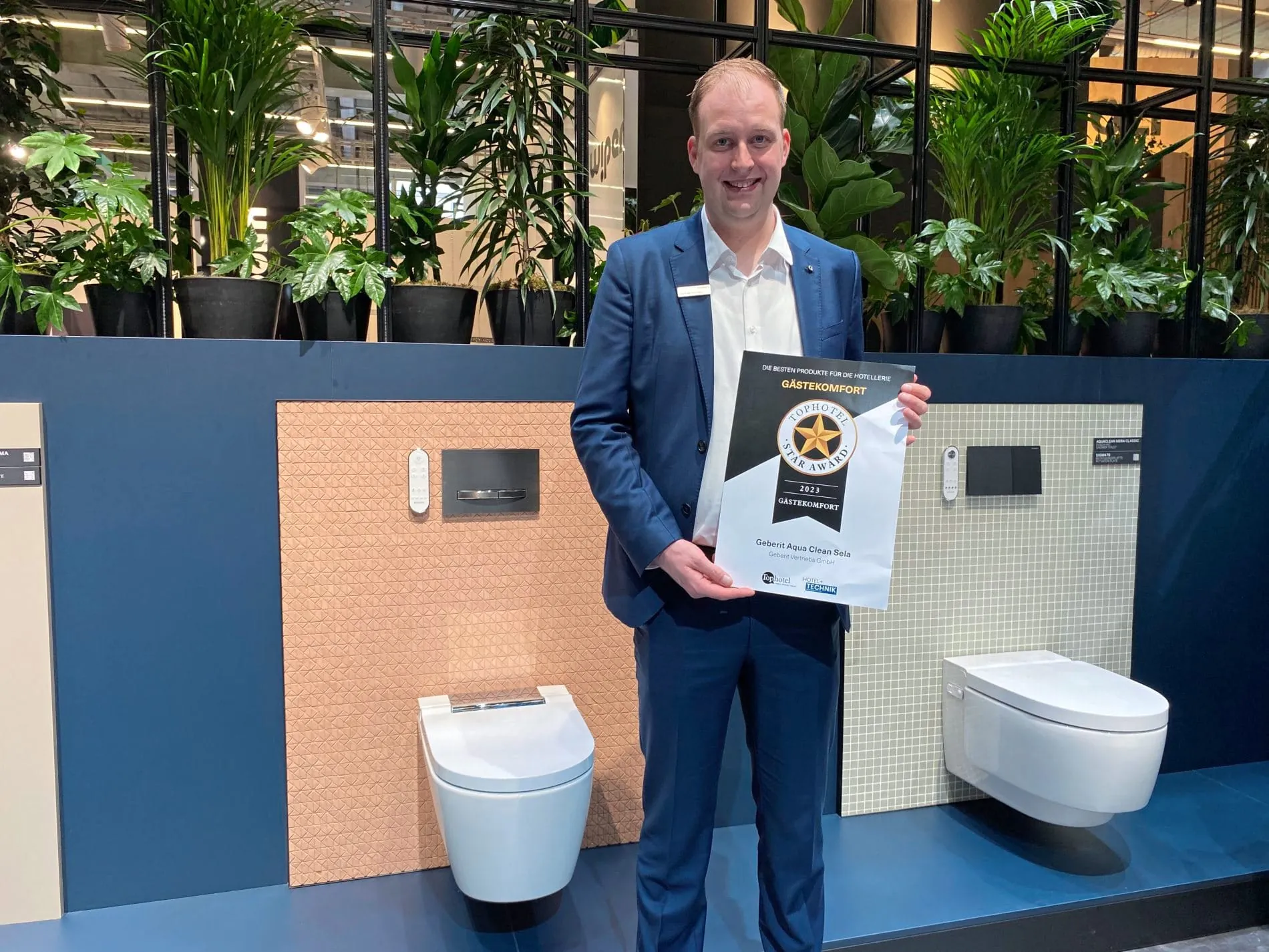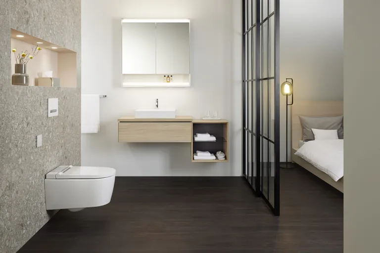 Das Dusch-WC „Geberit Aqua Clean Sela“ bietet neben der Intimreinigung mit Wasser weitere Funktionen wie das Orientierungslicht bei Dunkelheit oder die separate Ladydusche. Das Housekeeping profitiert laut Geberit von der „Turbo-Flush“-Spültechnik und dem spülrandlosen Design. Eigenschaften wie der Energiesparmodus oder die Entkalkungsfunktion würden es zudem wirtschaftlich machen. Mit seinem schlicht-edlen Design füge sich „Aqua Clean Sela“ in nahezu jedes Hotelbad harmonisch ein.