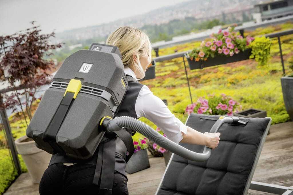 Der neue Akku-Rucksacksauger „BVL 5/1 Bp“ von Kärcher bringt laut Anbieter ein sehr geringes Gewicht, hohe Saugleistung sowie eine hohe Akku-Laufzeit zusammen und gehört zur 36 V-Akku-Plattform des Kärcher Battery Universe. Da er sich auf dem Rücken tragen lässt, entfällt das Nachziehen ebenso wie die Suche nach einer Steckdose. Für den „BVL 5/1 Bp“ ergibt sich ein Leergewicht von 3,3 Kilogramm, mit Akkus sind es 4,6 Kilogramm. Die Saugleistung beträgt 223 mbar und die Akku-Laufzeit bis zu 64 Minuten.