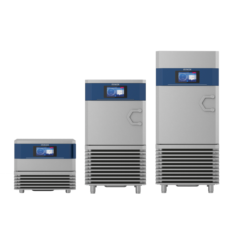 Die neueste Schnellkühler-Generation „Multi Fresh Next“ von Irinox arbeitet mit dem Kältemittel R290. Es weist eine höhere Wärmeaufnahmekapazität als herkömmliche Kältemittel auf. In der Praxis bedeutet das laut Irinox um bis zu 25 Prozent schnellere Abkühlzyklen bei bis zu 40 Prozent weniger Energieverbrauch. Die Geräte werden in unterschiedlichen Größen 1/1-GN, oder in 2/1-GN Breite mit Doppel-Multirack (1/1 GN Längseinschub) angeboten. Ein Beispiel für hohe Effizienz ist nach Herstellerangaben der „Multi Fresh Next LL“, der 95 Kilogramm Beladungskapazität und 26 Einschübe GN 1/1-65 aufnehmen kann. Warmfunktionen wie Auftauen oder Regenerieren runden das Leistungsspektrum ab.