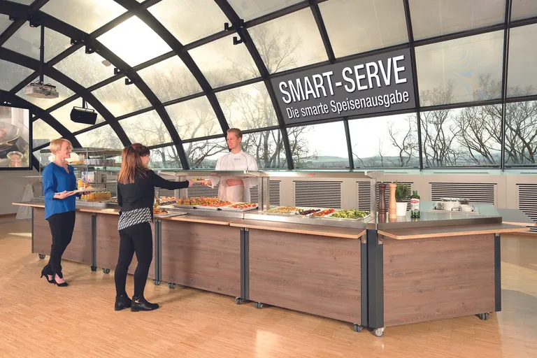 Ob beim Brunch oder einem Buffet im Hotel, mit der Speisenausgabe „Smart-Serve“ von Scholl werden Speisen und Getränke ansprechend präsentiert. Bei der Entwicklung standen laut Anbieter Funktionalität, Flexibilität und Wirtschaftlichkeit im Vordergrund. Die einzelnen Module greifen ineinander und sind flexibel zusammenstellbar. Die Flächen sind leicht zu reinigen – vor allem die Kochflächen – und die Wege kurz. Alles ist schnell griffbereit.