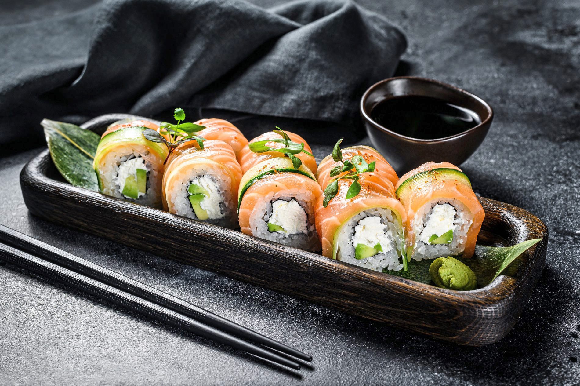 Ab sofort verwöhnt Alexis Savanx in der resorteigenen Weinbar "Kork & Gloria" Gäste mit seinen Küchenkünsten. Der in Laos geborene Koch blickt auf eine jahrelange Erfahrung in asiatischer Fusionsküche in Restaurants in Miami oder Las Vegas und Luxushotels weltweit zurück. Nigiri, Sashimi, Maki und Inside-Out-Rolls reihen sich hier neben veganem Sushi, Tataki, Ceviche, Störkaviar und verschiedenen Austern ein. Die Kreationen werden als Pop-up-Konzept tagsüber auf einem mobilen Wagen im Spa Bistro und der Lobby serviert und abends in der hauseigenen Weinbar "Kork & Gloria", die ein angrenzendes Weinarchiv beherbergt. Regionalität ist nach Hotelangaben bei der Auswahl der Produkte zentrales Thema: So stammt der Fisch unter anderem von der lokalen Arler Fischzucht in Hüttschlag, während Austern und Kaviar von der Manufaktur Grüll in Salzburg bezogen werden. Neben ausgewählten Weinen sollen Cocktails mit österreichischem und japanischem Sake das kulinarische Erlebnis abrunden.