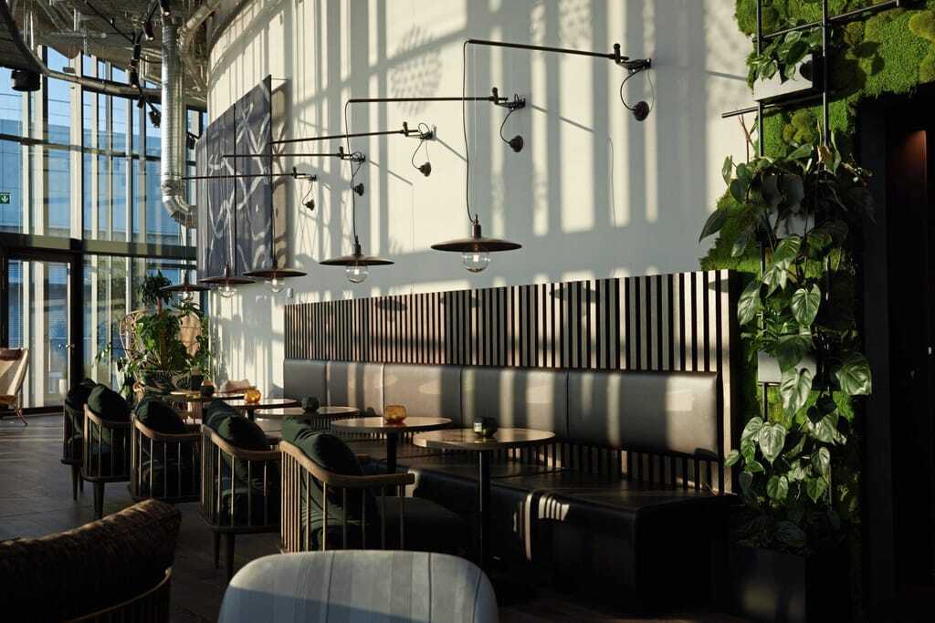 Die Glasfassade zur Straße und die begrünte Rückseite des Gebäudes wurde von Stararchitekt Christoph Ingenhoven entworfen. Die Cocktail- und Weinkarte mit ausgesuchten Bio-Weinen von Sommelier Maximilian Wilm sowie regelmäßige DJ-Abende „Sounds in the Cloud“ und ein Blick von der Rooftop-Bar über die Stadt runden das Angebot ab. red/sar