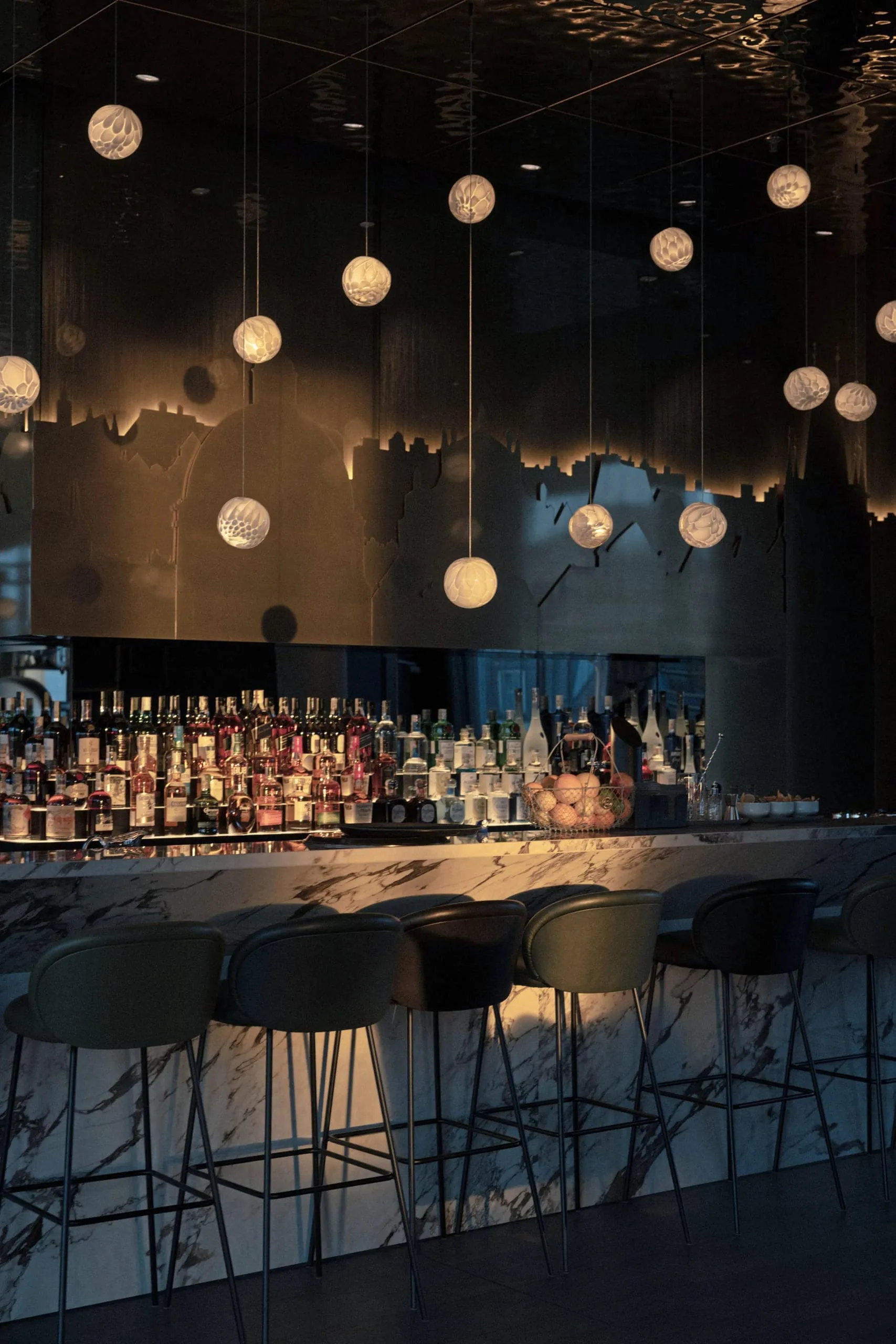 Goldener Hingucker: Die Silhoutte von Prag im Bar-Bereich.