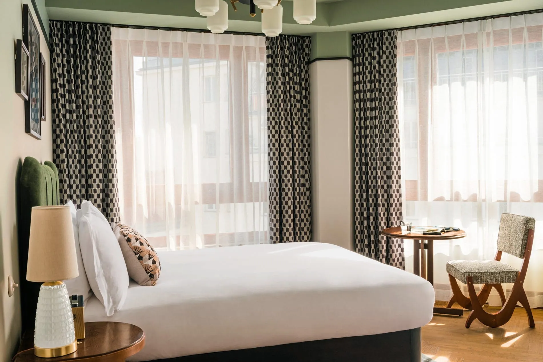 Im gesamten Hotel sollen heimische Vintage-Möbel und maßgefertigte Teppiche für "eklektische Gemütlichkeit" sorgen. Sterling Art hat für die öffentlichen Bereiche und die Gästezimmer Kunstwerke kuratiert: Ein maßgeschneidertes großes abstraktes botanisches Werk der österreichischen Künstlerin Rini Spiel und ein Ölgemälde der Konzerthausfassade des lokalen Künstlers Rudolf Fitz ziehen in der Lobby die Blicke auf sich.
