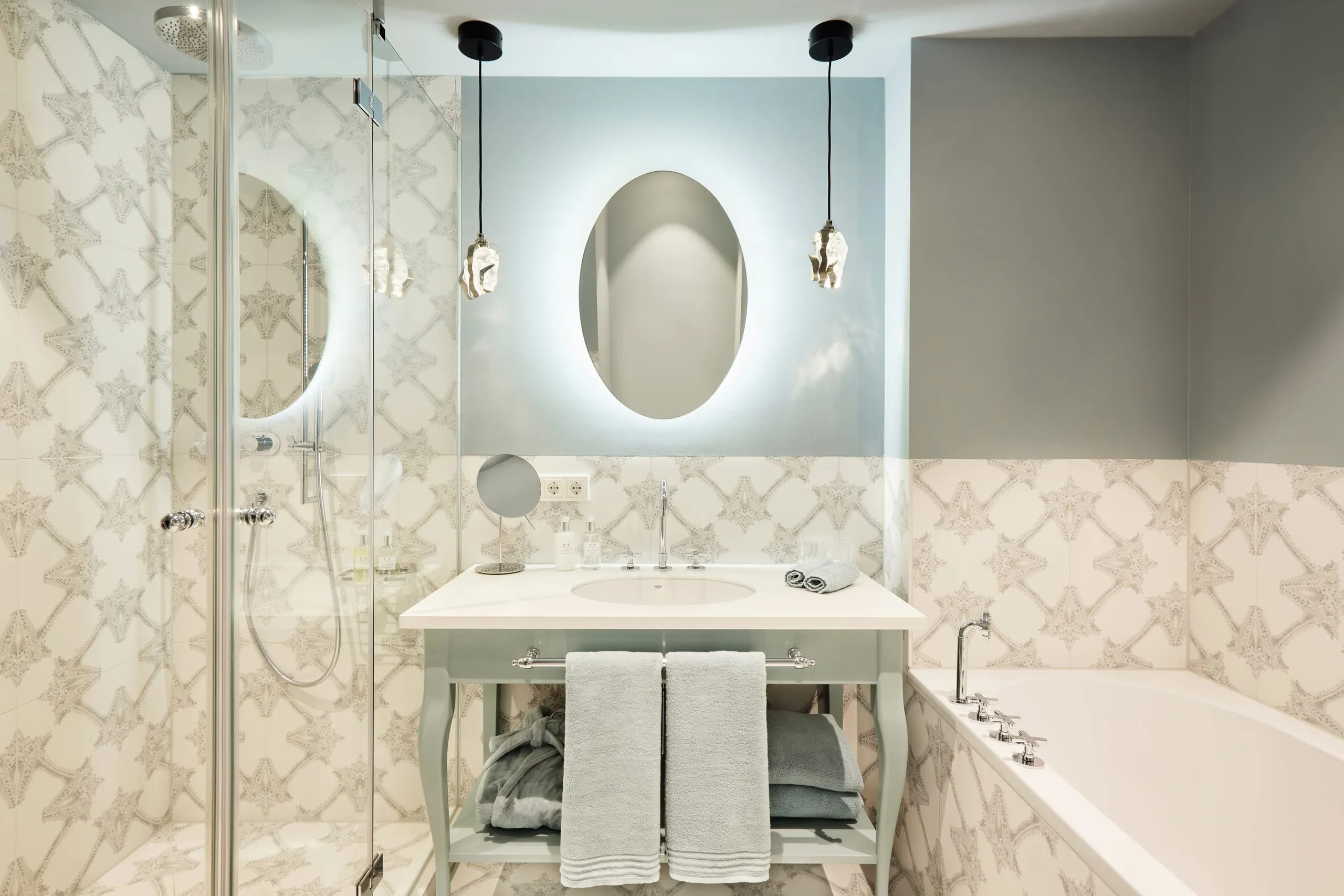 Laut den Betreibern sollten auch die Bäder mit Extravaganz punkten. Aus diesem Grund wurden alle 76 Bäder mit Geberit-Dusch-WCs ausgestattet – "Dies sei ungewöhnlich", sagt Peter Ernst, Verkaufsleiter Design und Ausstellung des Sanitärspezialisten. „Oftmals investieren Hotels nur für höherklassige Zimmer in Dusch-WCs.“ Doch die Betreiber wollten vermeiden, dass Gäste es als Downgrade empfinden, wenn sie bei einem weiteren Besuch in einem Zimmer ohne Dusch-WCs untergebracht seien.
