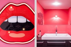 In der Suite "My Way" kommt das Sonnengelb der Farbe No 99 Lilo zum Einsatz. Sie erinnere an die gelben, aufblasbaren Luftmatratzen, die auch "Lilos" genannt werden, so der Hersteller. Seit den 60ern ist "Untitled" der häufigste Titel für Werke zeitgenössischer Kunst. Solch eines hängt auch im "Pop Art“-Appartement des Hotels: Ein offener Mund umrahmt von roten Lippen. Hier setzte die Inhaberfamilie unter anderem auf einen leuchtenden Fuchsia-Ton mit minimalem Blauanteil als Wandfarbe – No 45 Untitled Pink.