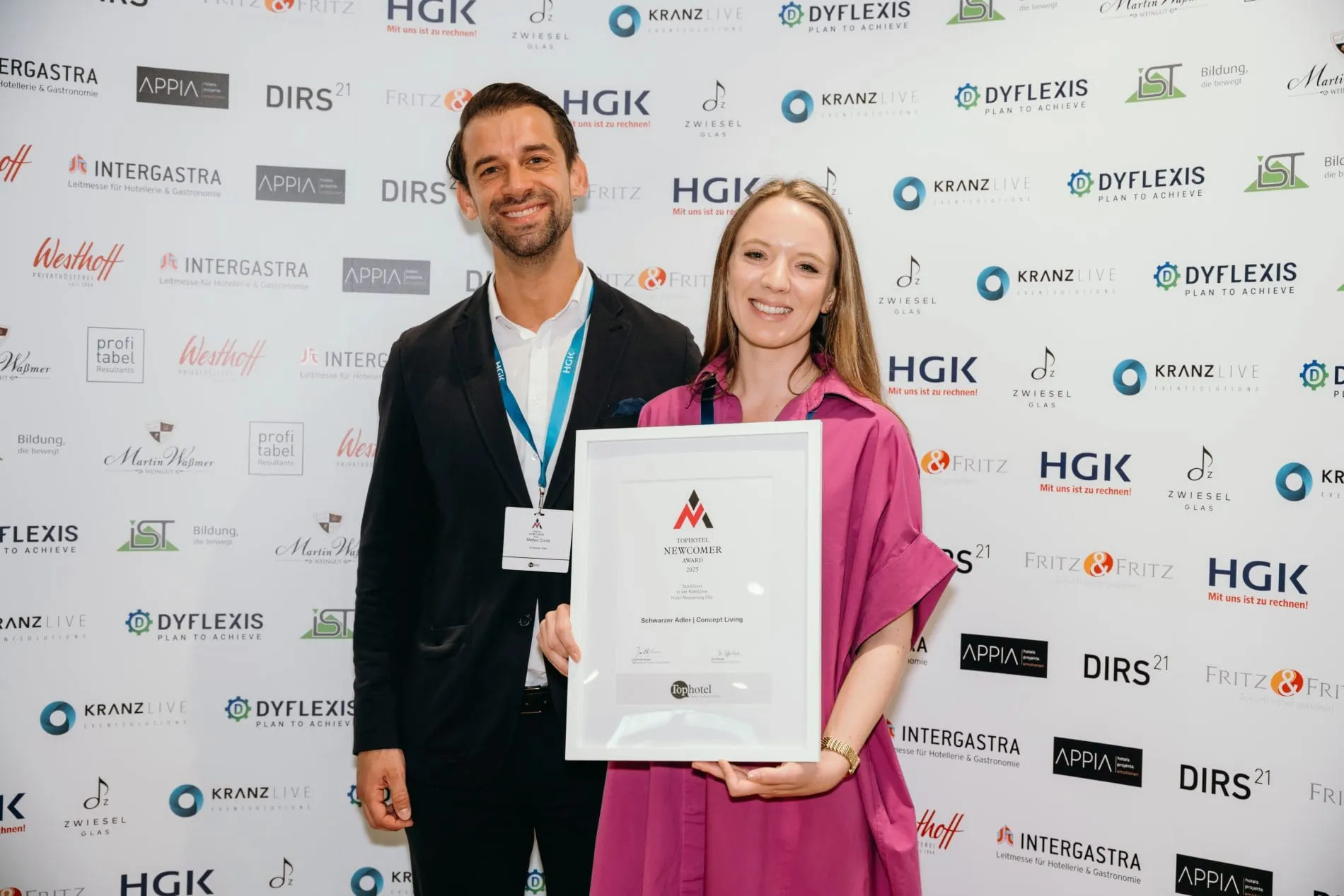 © Faye SchichtPreisverleihung des Tophotel Newcomer Awards 2025: Marlen Seidel vom Taschenbergpalais mit Jurymitglied Martin Rahmann. -