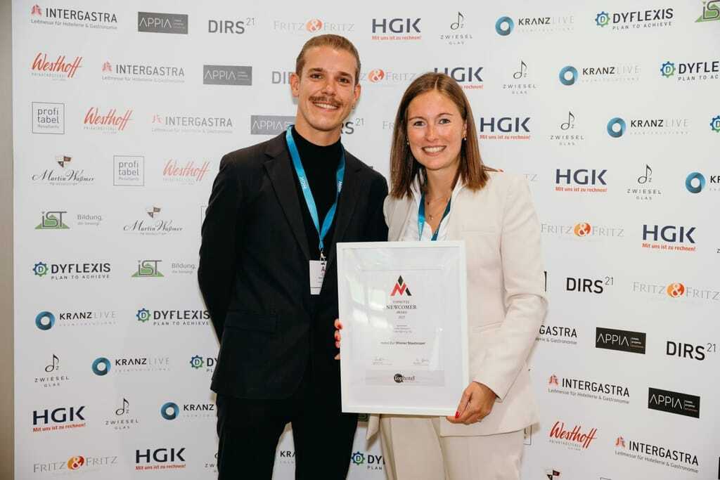 Nominierte in der Kategorie "Hotel-Opening City": Mario Sallinger und Victoria Klinkhammer vom Hotel Zur Wiener Staatsoper. - © Faye Schicht