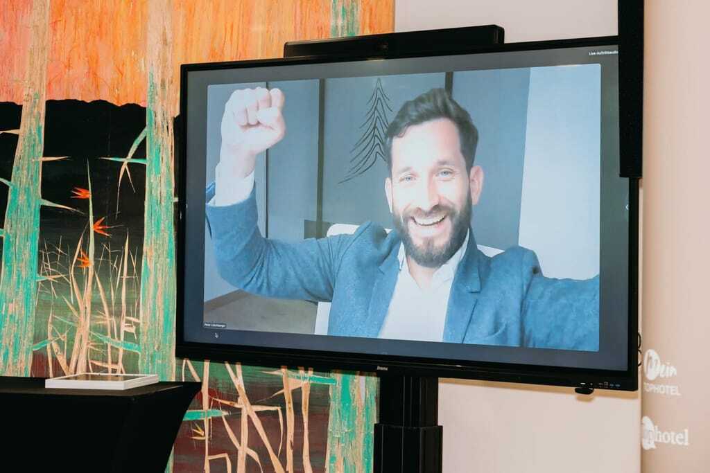 Preisverleihung des Tophotel Newcomer Awards 2025: Die Nominierten und Gewinner in der Kategorie "Hotelgastronomie Privat". Peter Löschberger vom Naturhotel Forsthofgut war zugeschaltet. - © Faye Schicht