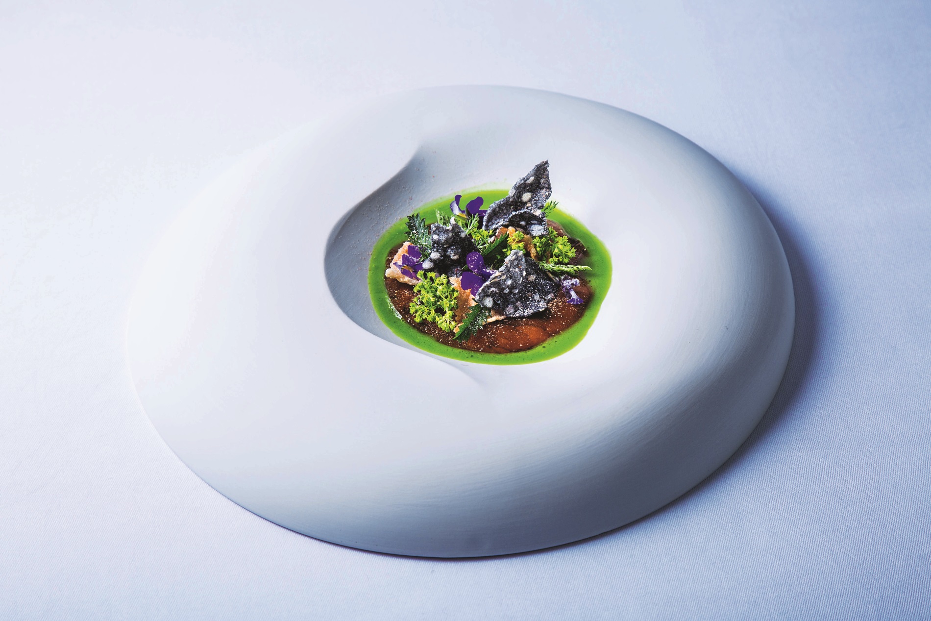 Die tiefe Aromatik umspielt der Koch mit allerhand Frischeelementen, darunter gepickelte