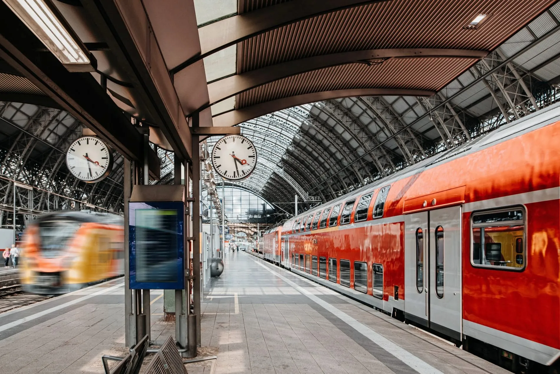 Bahnverkehr im Bahnhof mit Uhranzeige