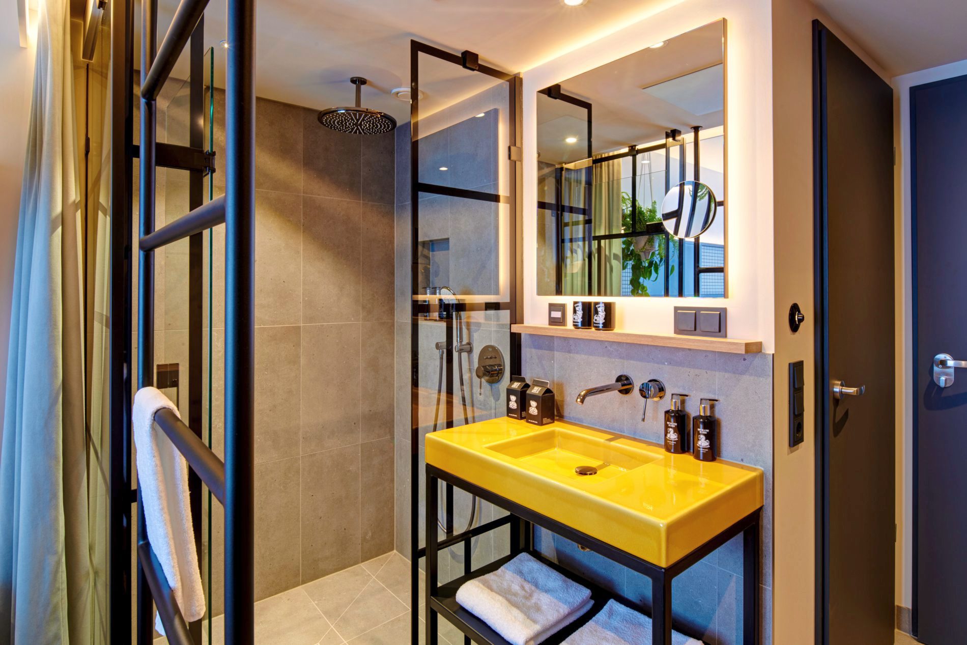 In den 147 Zimmer des Hozels führen Blumennetze und Rankpflanzen das Urban Gardening weiter. Klare Linien und puristisch in Szene gesetzte Materialien, wie goldene Waschbecken, Sichtbeton, Industrieglas und Massivholz, sollen weitere Akzente im Designkonzept setzen. Hingucker sind nach Unternehmensangaben die Illustrationen über den Betten, die der Ulmer Künstler Letterbube gestaltet hat. Von ihm finden sich zudem Karten und Handletterings im Me and All Hotel Marketplace. Daneben sorgt Lill’s Organic Dog Store mit plastikfreien Hundebetten, Spielzeug und Leckerlies auf den Zimmern und im Marketplace dafür, dass sich auch vierbeinige Gäste willkommen fühlen.
