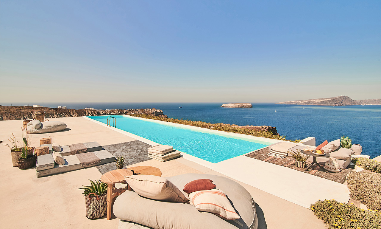 Das Nature Eco Residences Santorini hat 15 Suiten und zeichnet sich durch natürliche Materialien, Vintage Deko und handgefertigte Möbelstücke aus.