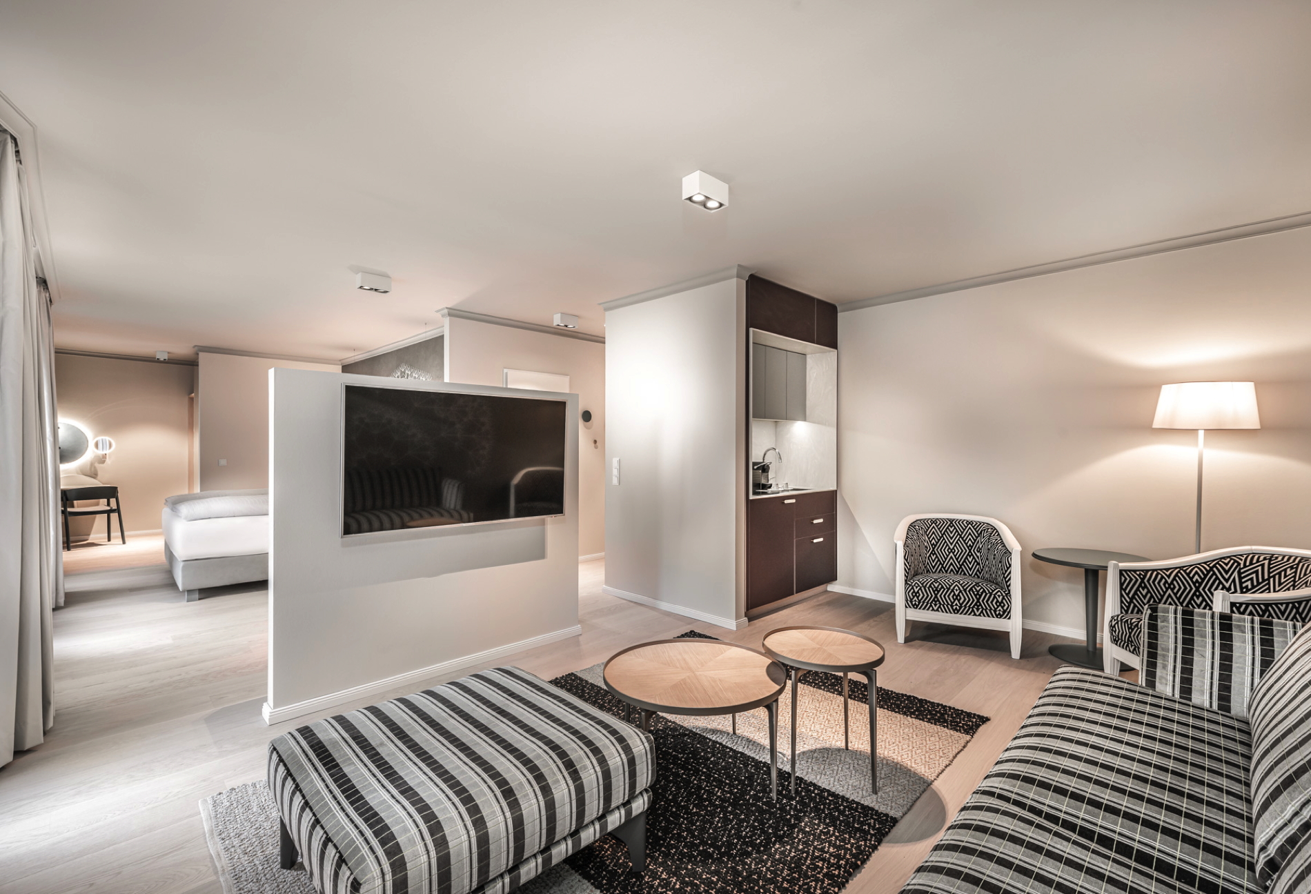 Viele Möbelstücke wie die Rückwände der vorhandenen Betten wurden aufgearbeitet und neu drapiert. Auch bei anderen Elementen zählt der nachhaltige Gedanke: So wurden die Rugs der Zimmer aus recycelter Baumwolle und Korkeiche von Hand gewebt. Auch die 349 Türen wurden aufgearbeitet und teilweise erneuert.