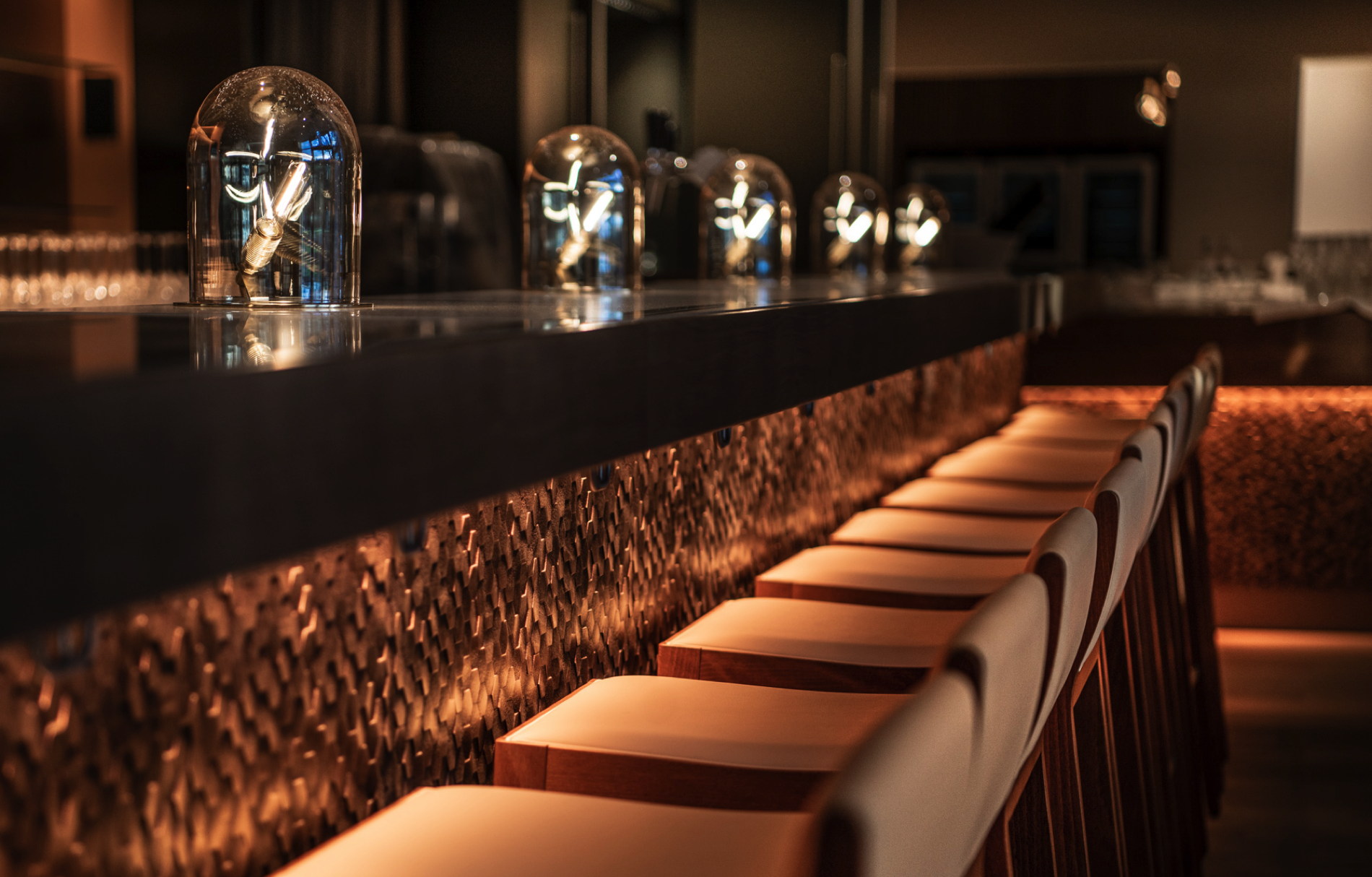 Es verbirgt sich so viel Storytelling in der Architektur und im Design … Die Taue mit Goldapplikationen, die als Garderobe in der Lobby fungieren und das Motto "rustikale Eleganz" besonders authentisch widerspiegeln sind sicher mein Augenzwinker-Highlight. Verliebt bin ich aber vor allen Dingen auch in die Bar und ihre Deckenkonstruktion, die den Funkenflug des Schmiedes darstellt. Dieses Detail hat sich unsere Innenarchitektin einfallen lassen, da die Gastroplaner den Beruf des Barkeepers als "Handwerker" sehr bildlich dargestellt haben mit einem Schmied am Brennofen und entsprechendem Funkenflug.