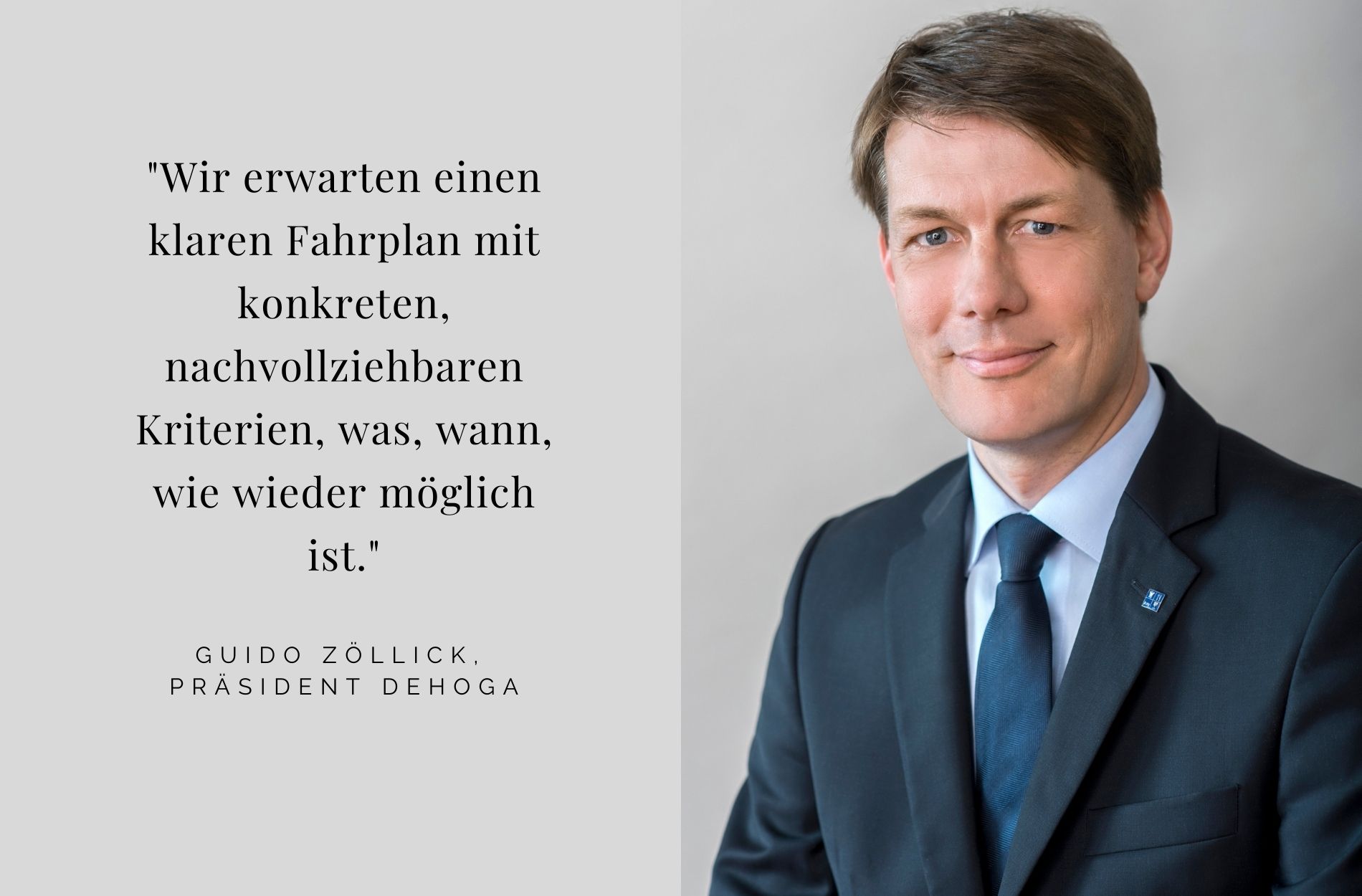 - Die Branche braucht einen klaren Fahrplan mit konkreten, nachvollziehbaren Kriterien, was, wann, wie wieder möglich ist. Die Voraussetzungen für die Öffnungsschritte sollten bundeseinheitlich definiert werden. Es müssen Perspektiven für alle Betriebstypen geschaffen werden.