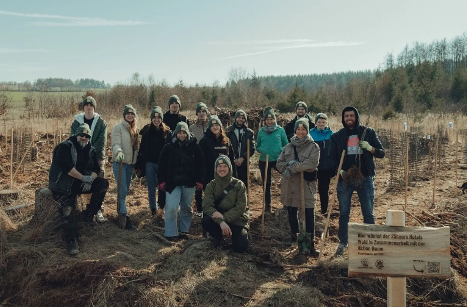 Als Teil seiner umweltfördernden Maßnahmen unterstützt 25hours Hotels verschiedene Baumpflanzinitiativen. Für die deutschsprachigen Häuser arbeitet die Hotelgruppe mit der gemeinnützigen Hamburger Organisation Aktion Baum zusammen, die Baumpflanzprojekte in Deutschland, Österreich und der Schweiz umsetzen. Im Rahmen der Kooperation haben 25hours-Mitarbeitende im Frühjahr in der Nähe von Frankfurt den Spatenstich für einen eigenen Wald gesetzt und rund 250 Ahornbäume gepflanzt. Ziel der Aktion ist es, zur langfristigen Erholung der Natur, CO2-Kompensation und zum Erhalt der globalen Biodiversität beizutragen. So weit wie möglich pflanzt Aktion Baum daher Mischwälder, die ein gutes Potenzial haben mit schwierigen klimatischen Bedingungen zurechtzukommen und durch die darüber hinaus ein Maximum an Biodiversität gefördert wird.
