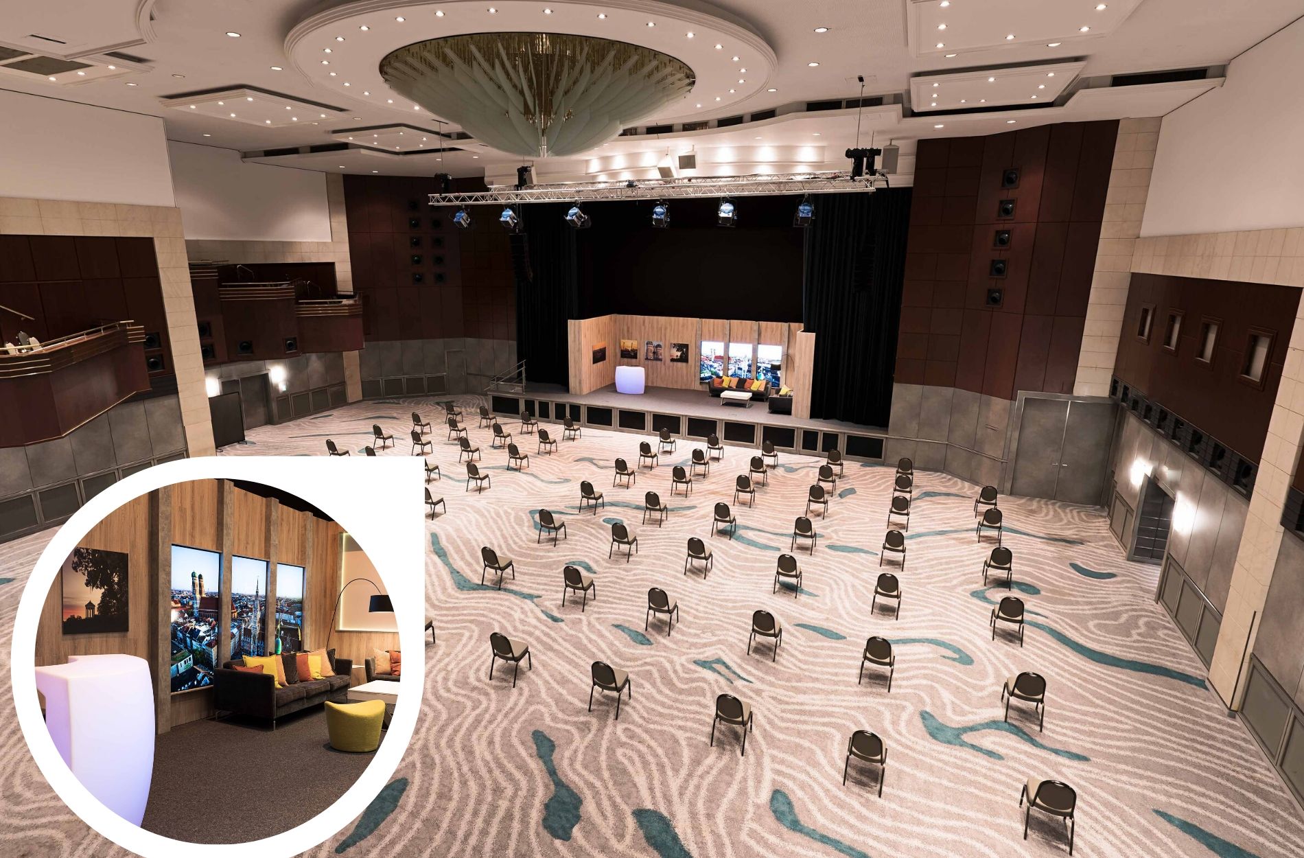 Die hybriden Veranstaltungen werden in der Praxis wie folgt umgesetzt: Kleine Gruppen treffen sich vor Ort und pflegen den persönlichen Austausch. Die Präsenz-Teilnehmer können sich im Hotel auf insgesamt 35 Veranstaltungsräume verteilen, den selben Vortrag hören und zugleich mit den anwesenden Kollegen als auch denjenigen vor Bildschirmen weltweit in Verbindung treten. Ein professionelles Kamera- und Technikteam und eine extra-sichere Internetleitung gewährleisten eine störungsfreie Übertragung aus dem neuen Streaming-Studio. Im Ballsaal selbst finden neben dem Plenum im modernen Studio-Setup bei Einhaltung der Abstandsregeln bis zu 160 Teilnehmer Platz. Die kombinierte Reichweite ist quasi unbegrenzt.