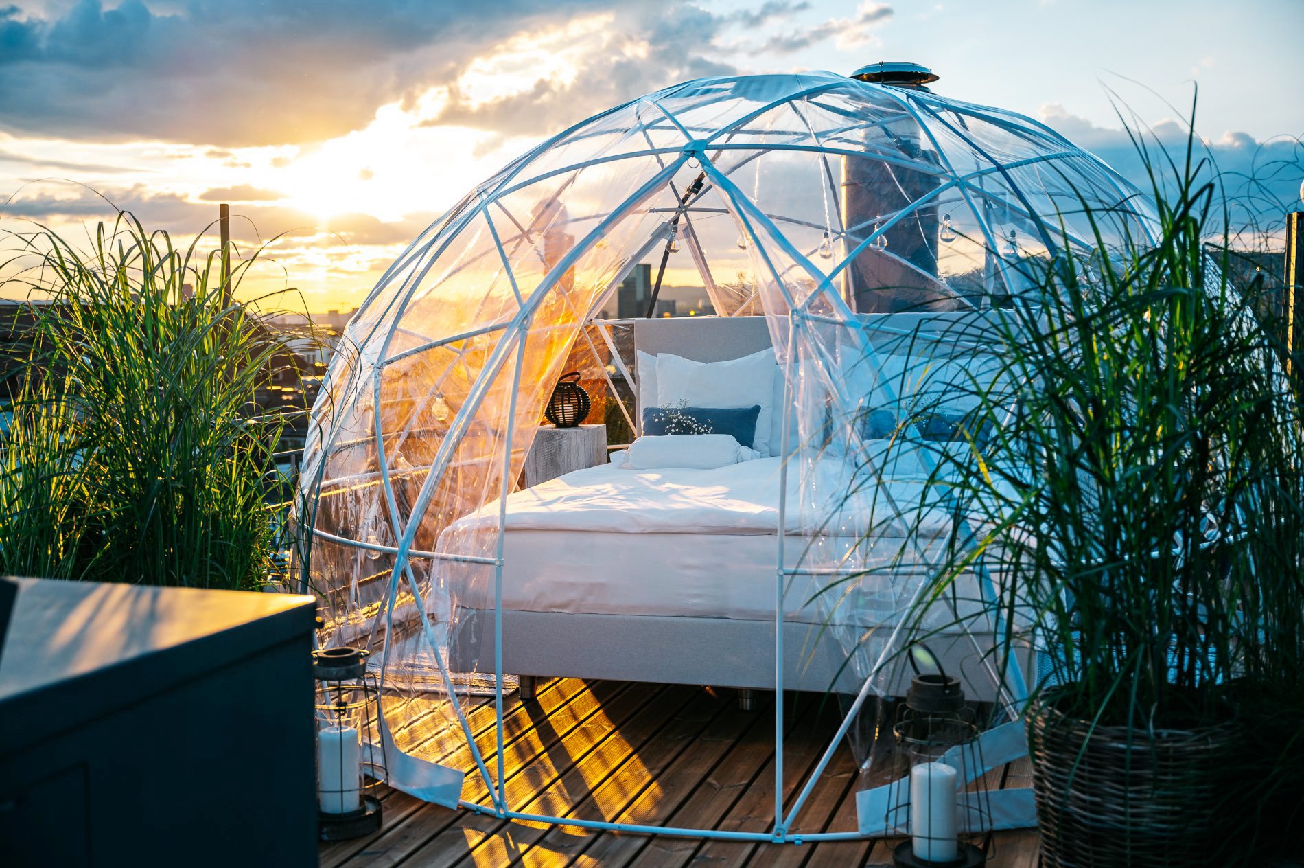 Draußen übernachten und gleichzeitig Luxus genießen? Dazu haben Gäste des Widder Hotels bis Anfang Oktober in einer Penthouse-Bubble die Möglichkeit. Umhüllt von einer "Seifenblase" können Paare eine Nacht hoch über Zürichs Altstadt verbringen.
