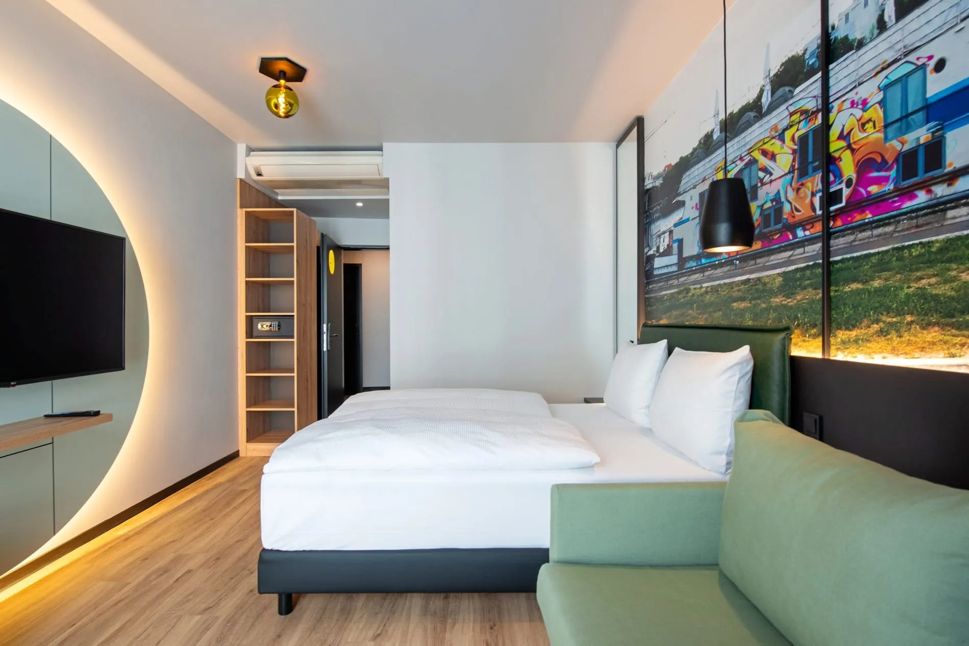 Das Vienna House by Wyndham Potsdamer Platz befindet sich in Berlin Mitte, direkt am Gleisdreieck Park und in der Nähe des Potsdamer Platzes. Besonderes Designmerkmal des neu gebauten Hotels ist das von lokalen Graffiti-Künstlern entworfene Street-Art-Motiv, das der Unterkunft eine künstlerische Note verleiht.