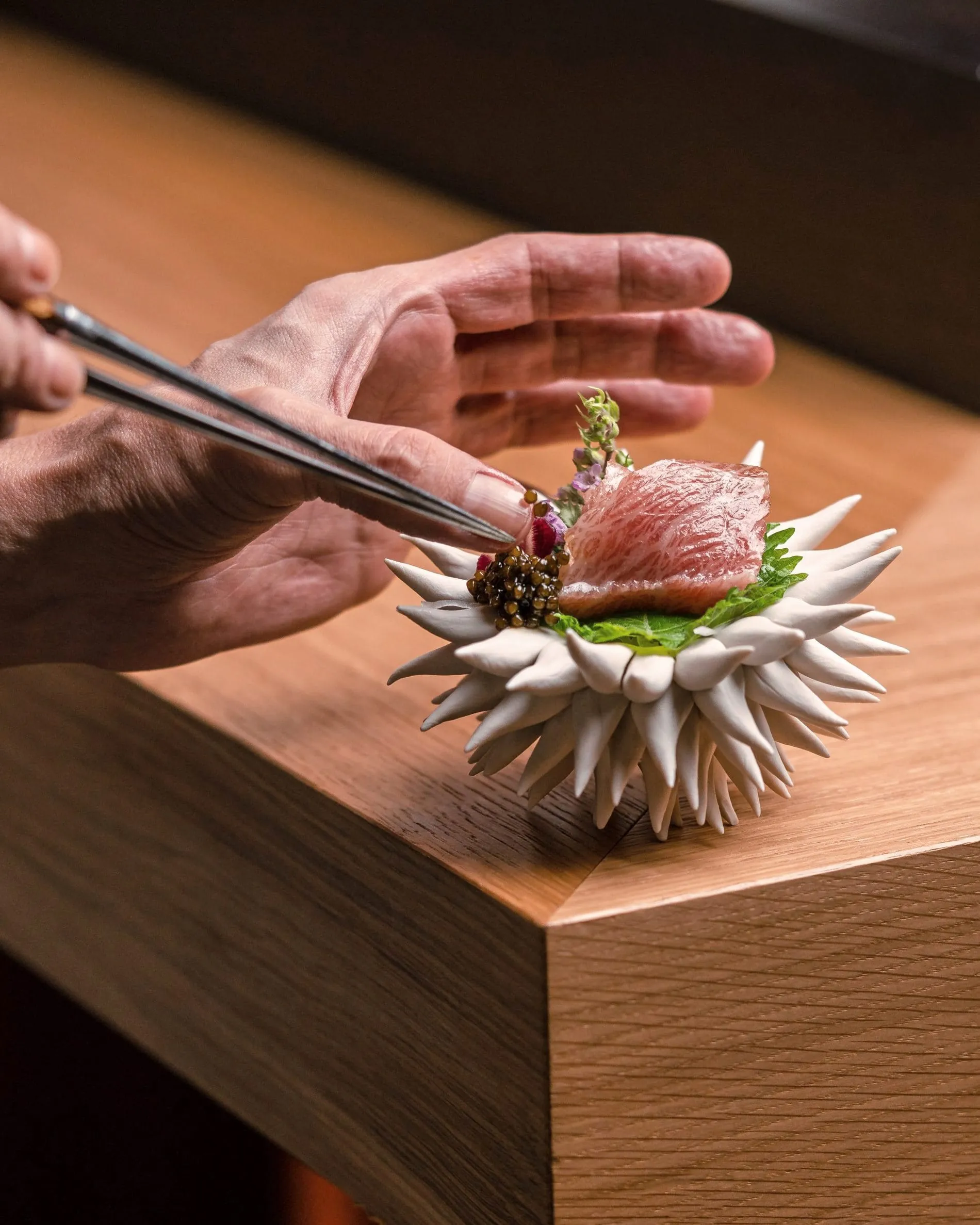 Das "Minamo" mit nur acht Plätzen bietet Omakase-Dining, bei dem sich die Gäste in die Hände des Kochs begebe und sich von der Menüauswahl überraschen lassen sollen. Gäste des Restaurants sitzen an einem Tresen und begeben sich für zwei Stunden in die Hände von Toshiro San. Der Chefkoch mit langjähriger Erfahrung in der japanischen Küche bereitet die Gerichte, wie Chawamushi mit Shiitake, direkt vor ihren Augen zu. "Beim Omakase geht es um mehr als Essen: Es geht um die Interaktion zwischen Koch und Gast", erklärt er. Das Logo des Restaurants greift die Form des Vierwaldstättersees auf, auch der Name nimmt Bezug auf die Lage: Minamo bedeutet "Reflektionen des Wassers".