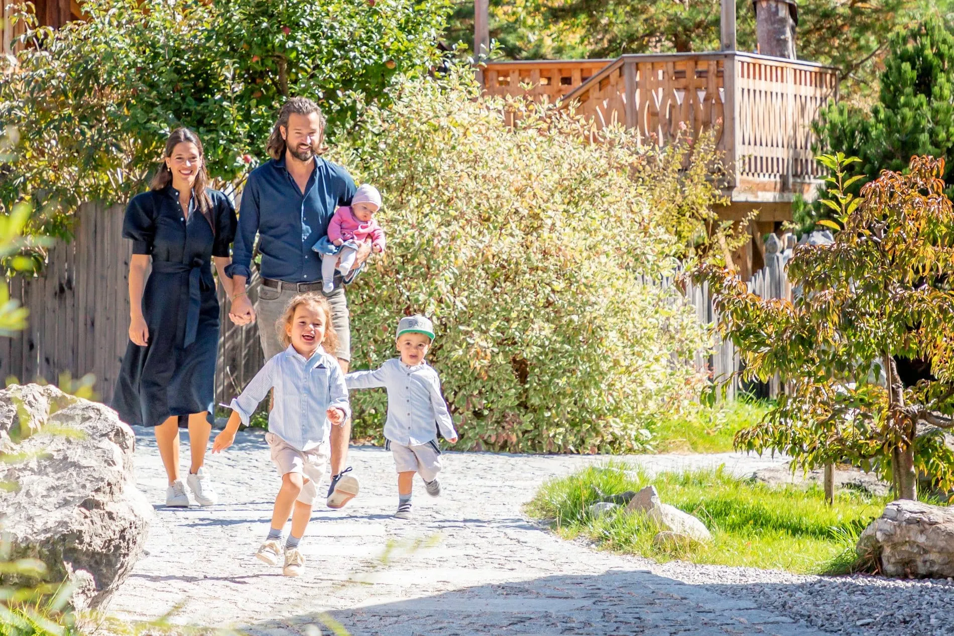 Auch Lea Oberhofer kennt beide Perspektiven – sie hingegen wohnt mit ihrer Familie jetzt wieder in dem Hotel in Seis am Schlern, in dem sie auch aufgewachsen ist. Damals hieß es „Ritterhof“ und wurde von den Eltern geführt. 2019 trat Lea Oberhofer zusammen mit ihrem Mann Simon Leitner die Nachfolge an. Im Rahmen eines Erweiterungsumbaus positionierten sie das Haus neu und feierten 2022 unter dem Namen „Sensoria Dolomites“ Wiedereröffnung. „Als Kind schätzte ich die Nähe und 24-stündige Präsenz meiner Eltern sehr“, erinnert sich Lea Oberhofer an den Wohnort Hotel. Als ihr Mann und sie nach zehn Jahren Auslandserfahrung nach Südtirol zurückkehrten, quartierten sie sich aber zunächst extern in einer Eigentumswohnung ein. „Die physische Distanz fühlt sich sehr konzernmäßig an, man schließt die Tür und kann mental gut abschalten. Das habe ich sehr genossen“, schildert Oberhofer die Vorzüge der Außer-Haus-Zeit, bevor das Pendel wieder in die andere Richtung umschlug: „Die Entscheidung, wieder auf das Hotelgelände umzuziehen, wurde mit der Geburt unserer ersten Tochter in die Wege geleitet. Es ist einfach praktischer, und ich spüre sehr viele Parallelen zu meiner Kindheit. Ich konnte zügig nach den Geburten wieder operative Arbeiten erledigen, bin schneller erreichbar, wenn unsere inzwischen drei Kleinen mich brauchen.“